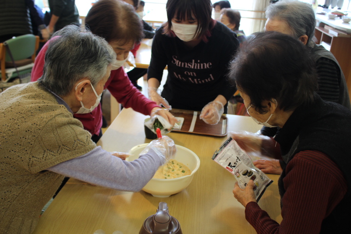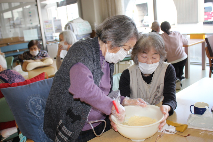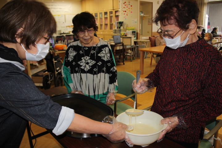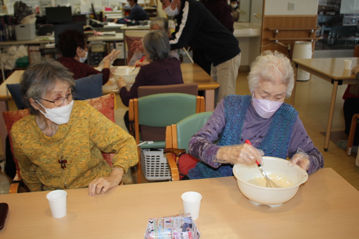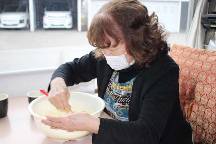 レクリエーションでおやつ作りをしました。