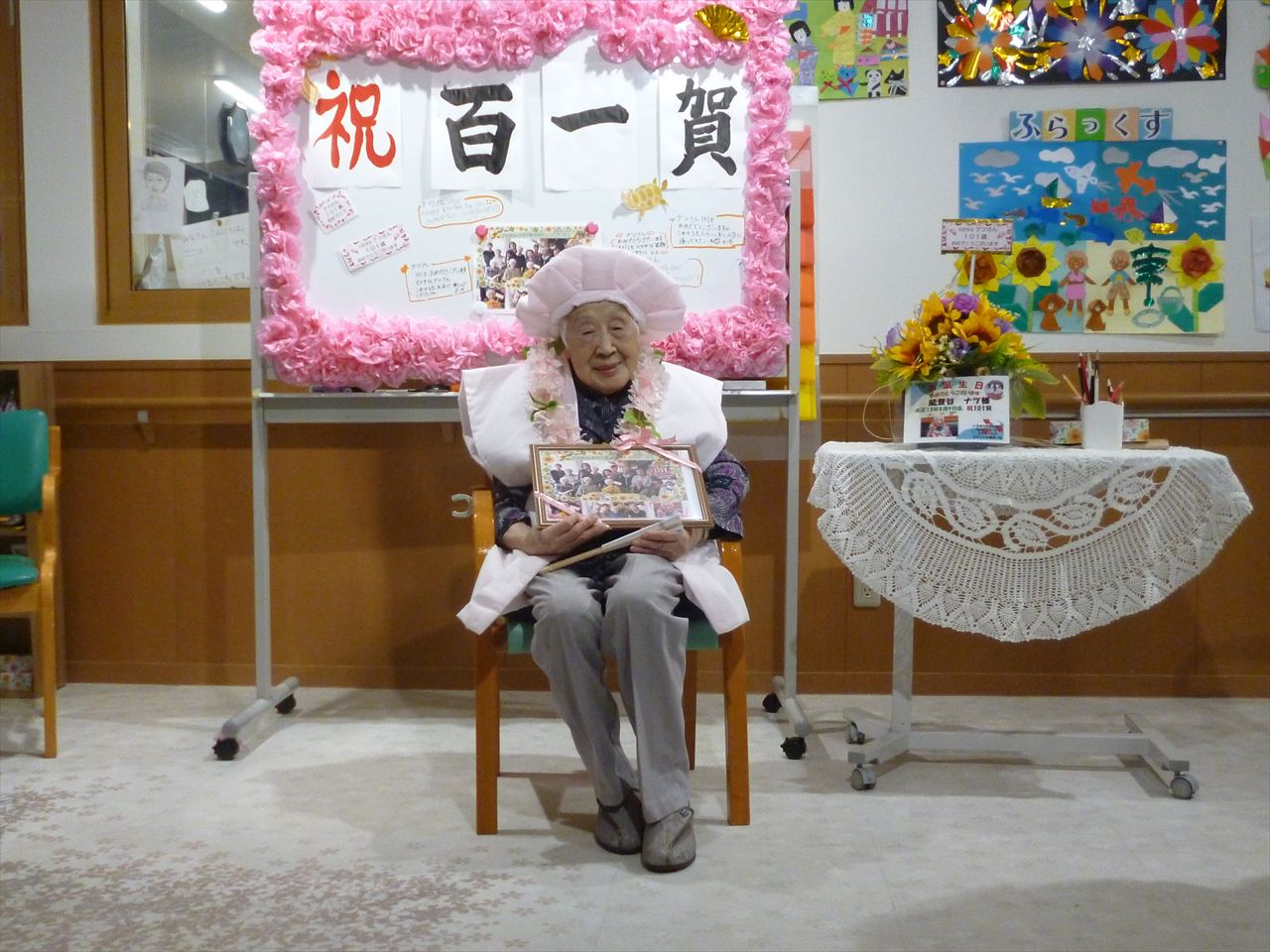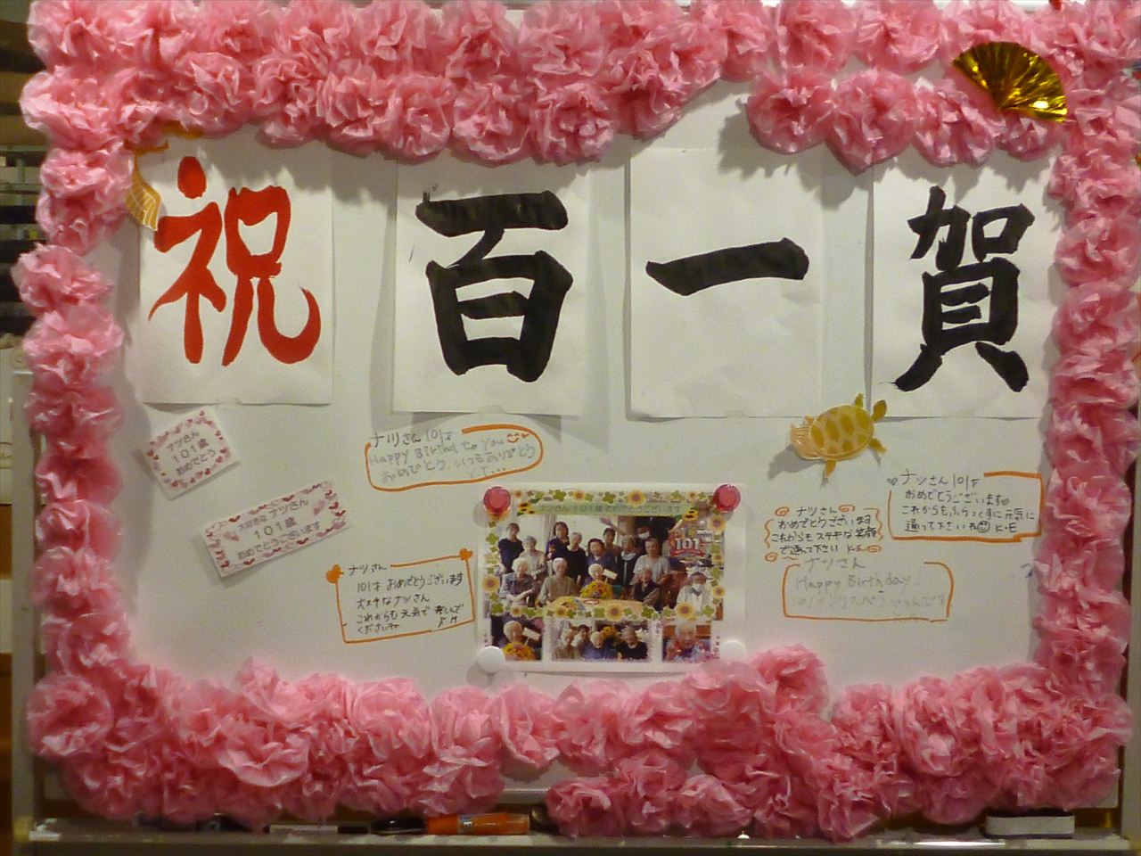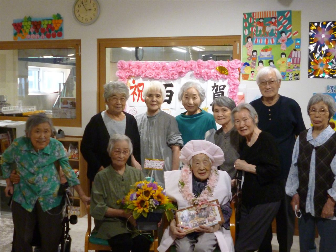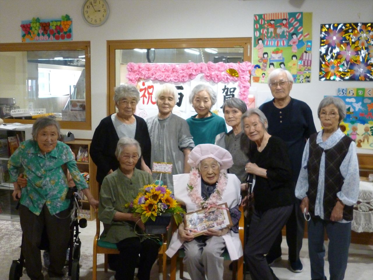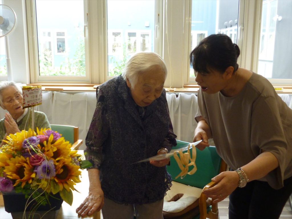 8月誕生会 投稿日: 2025年10月31日2025年10月31日 投稿者: dsca_master 8月の誕生者をご紹介いたします。 4名いらっしゃいましたが、1名はなんと・・・・ 101歳☆彡 百一賀のお祝いを致しました!(^^)! おたんじょうびおめでとうございます!これからも長生きしてお元気に通ってくださいね(^^♪ 来年もお祝いしましょうね(‘ω’)ノ