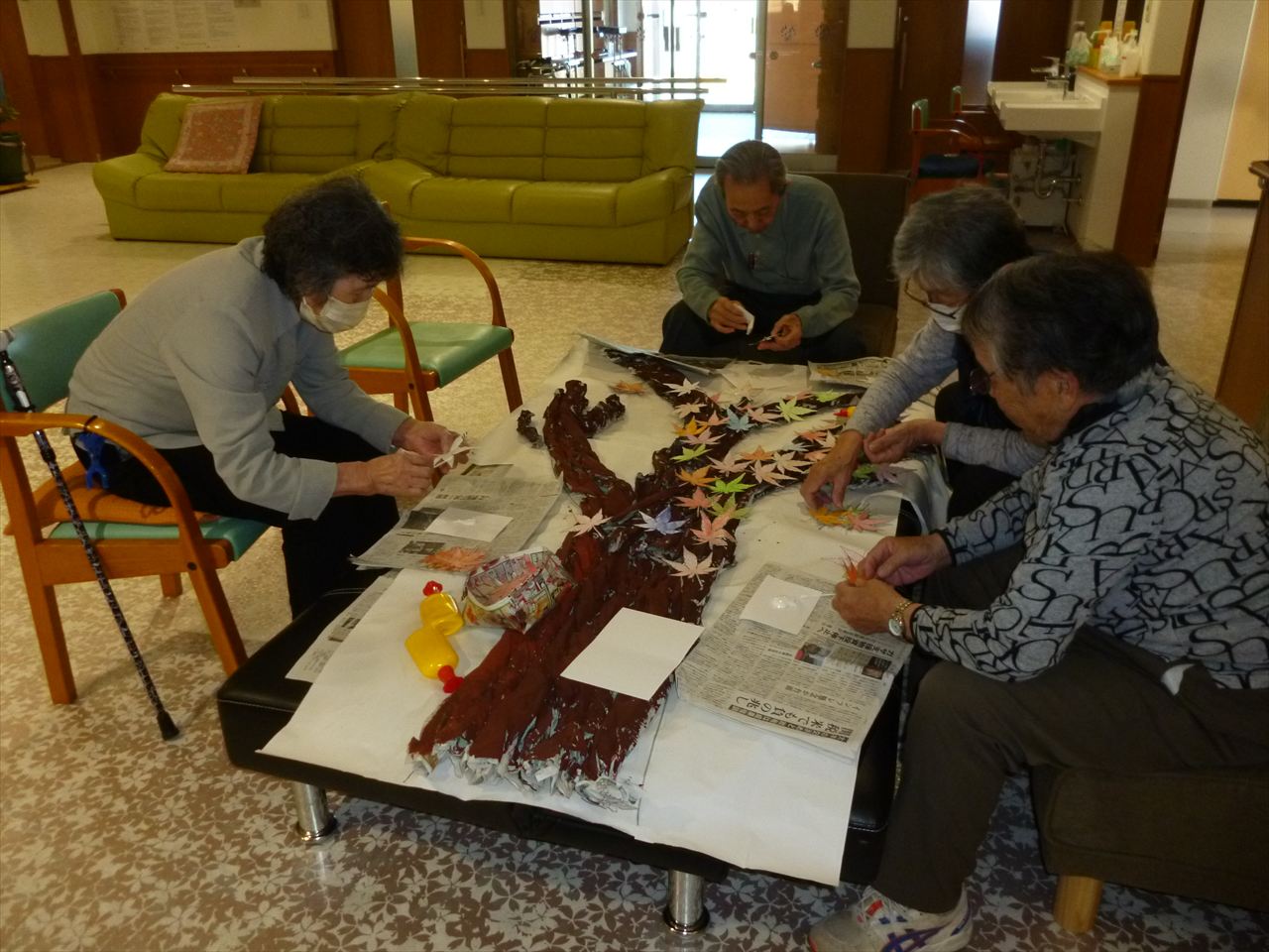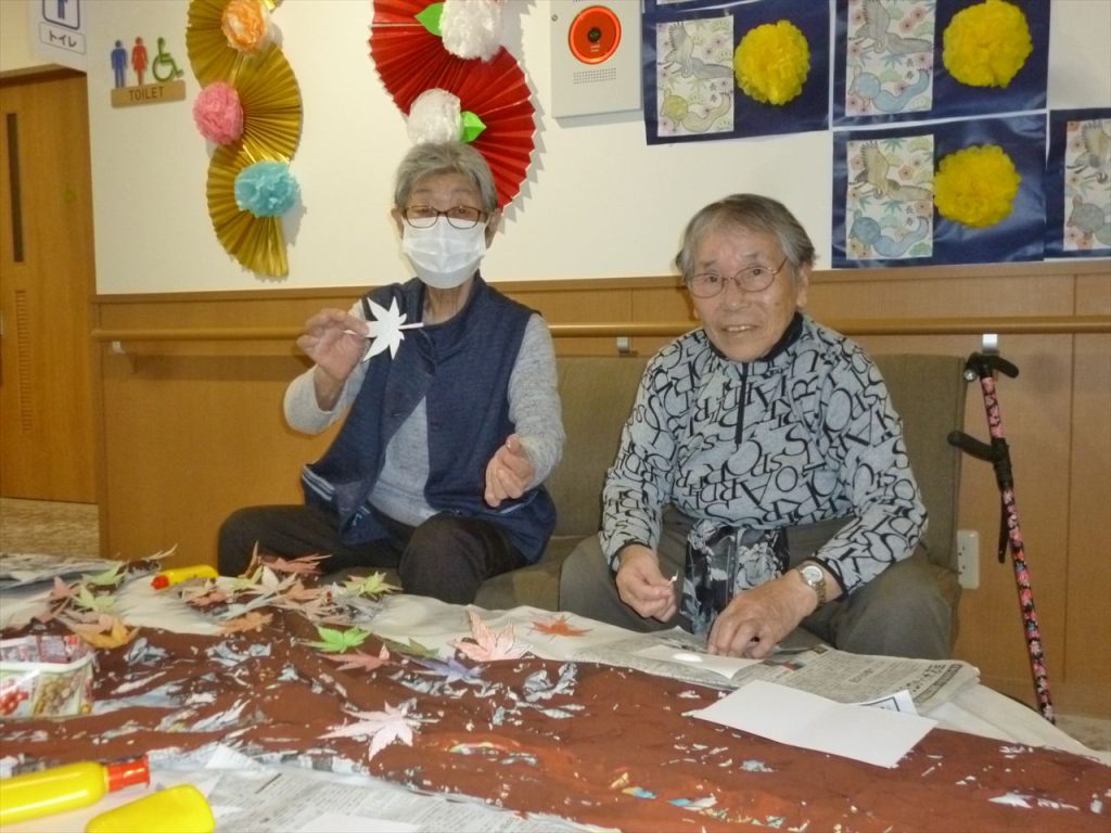 壁画作成「紅葉」に取り組まれたり