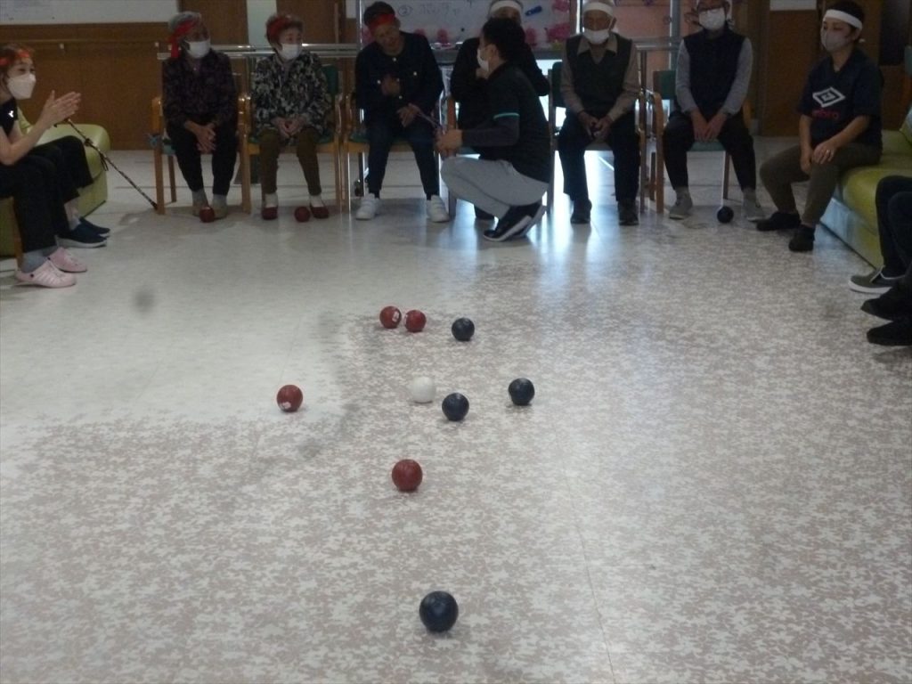 じゃんけんリレーと、ボッチャで楽しみました