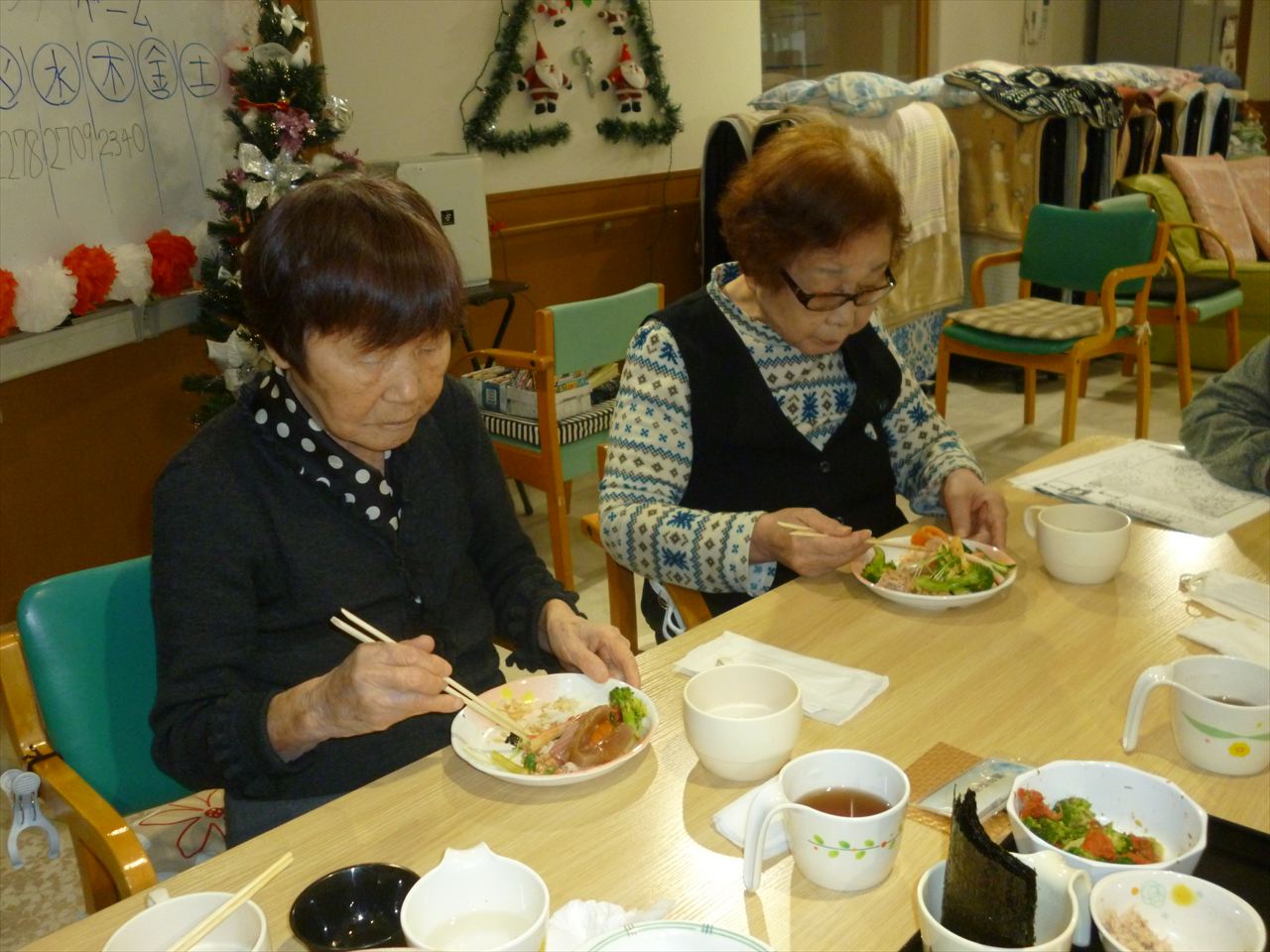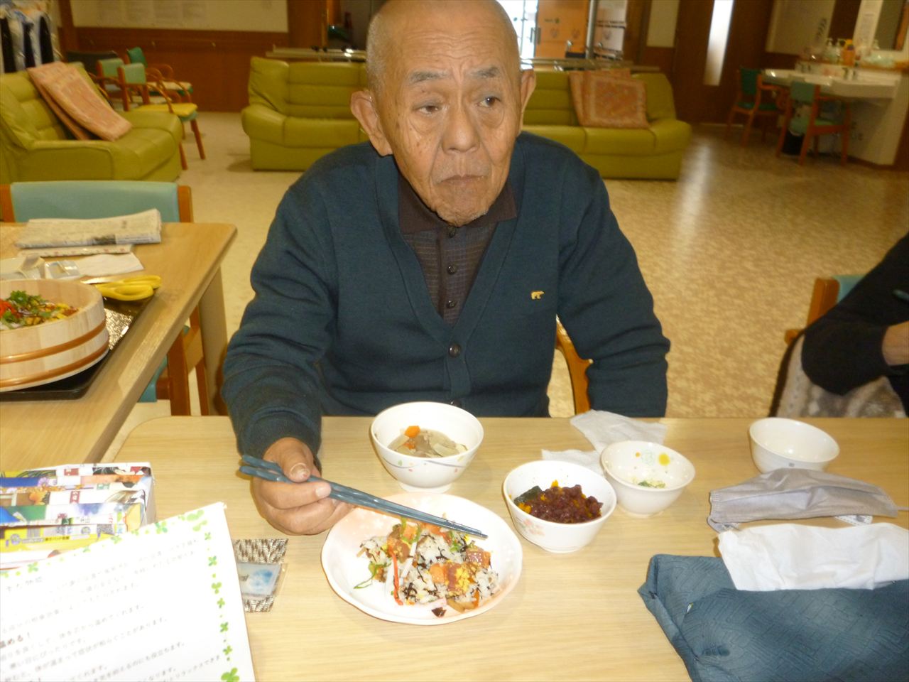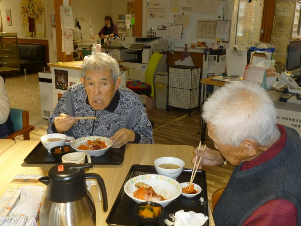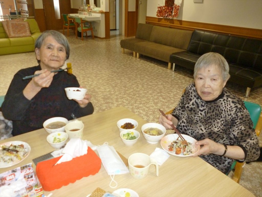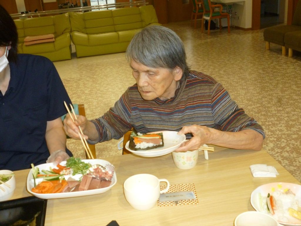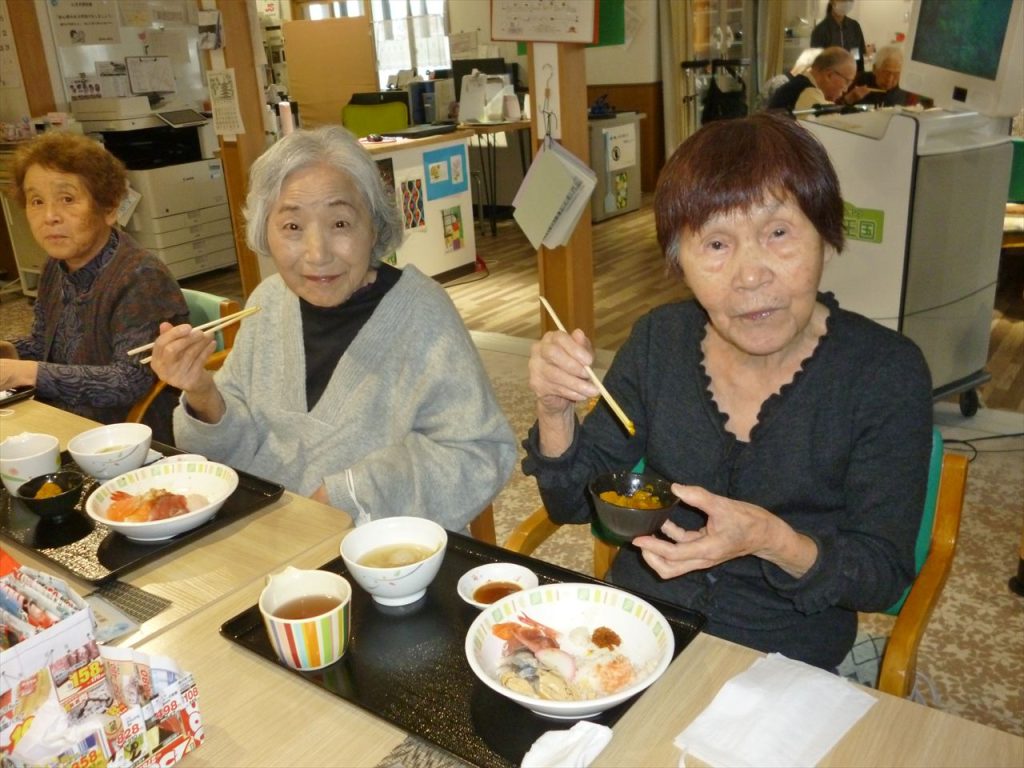 お寿司行事でお腹いっぱいに! 投稿日: 2025年12月25日2025年12月25日 投稿者: dsca_master 😁ちらし寿司・ばら寿司・手巻き寿司とお腹一杯食べる事が出来ました。 ノンアルコールも飲みながら「美味しいね」と笑顔も沢山見る事が出来ました。 次は何が食べられるのかと楽しみにされていました。 また皆様に楽しんでいただける行事を考えてまいります(^_-)-☆