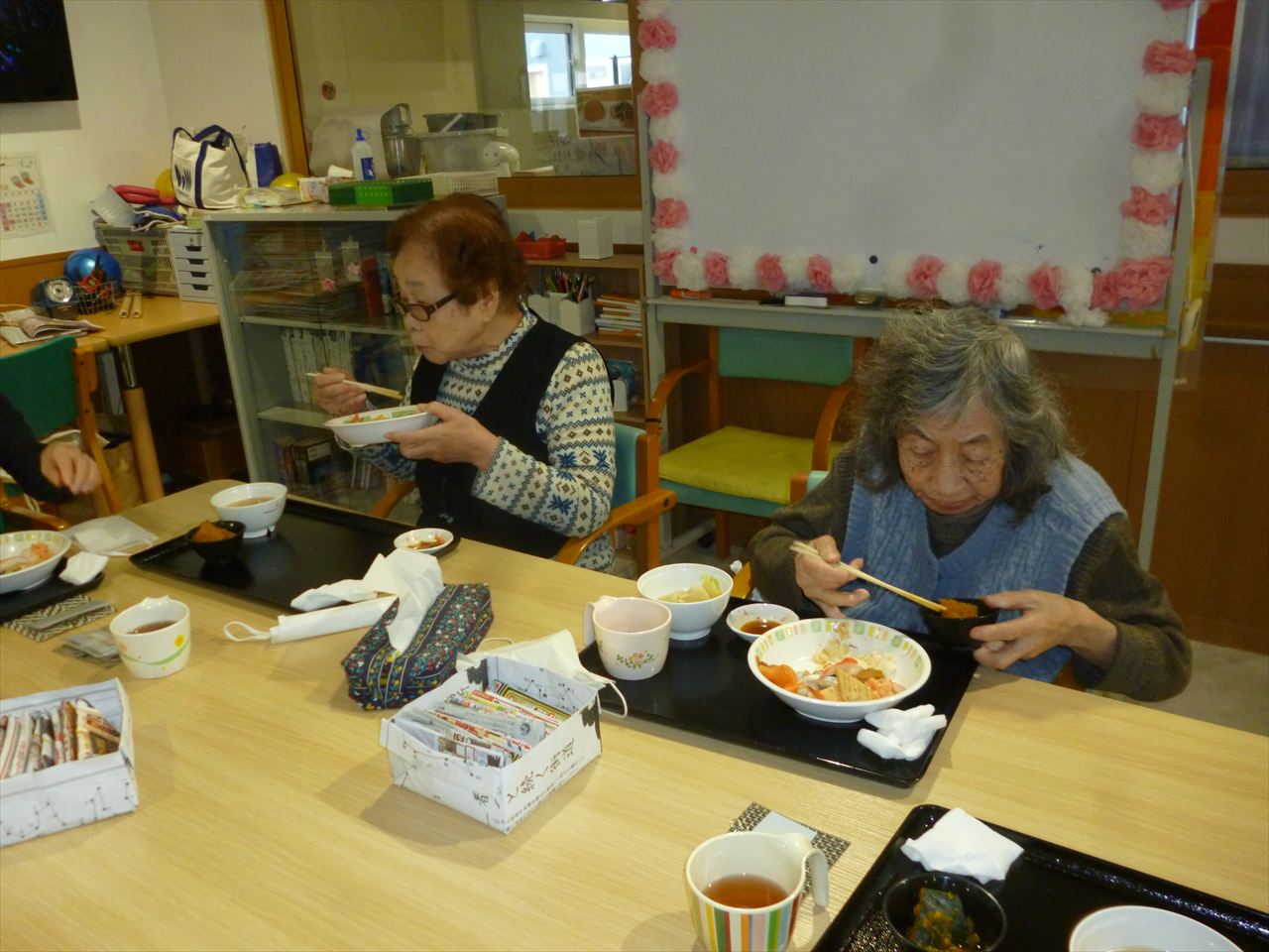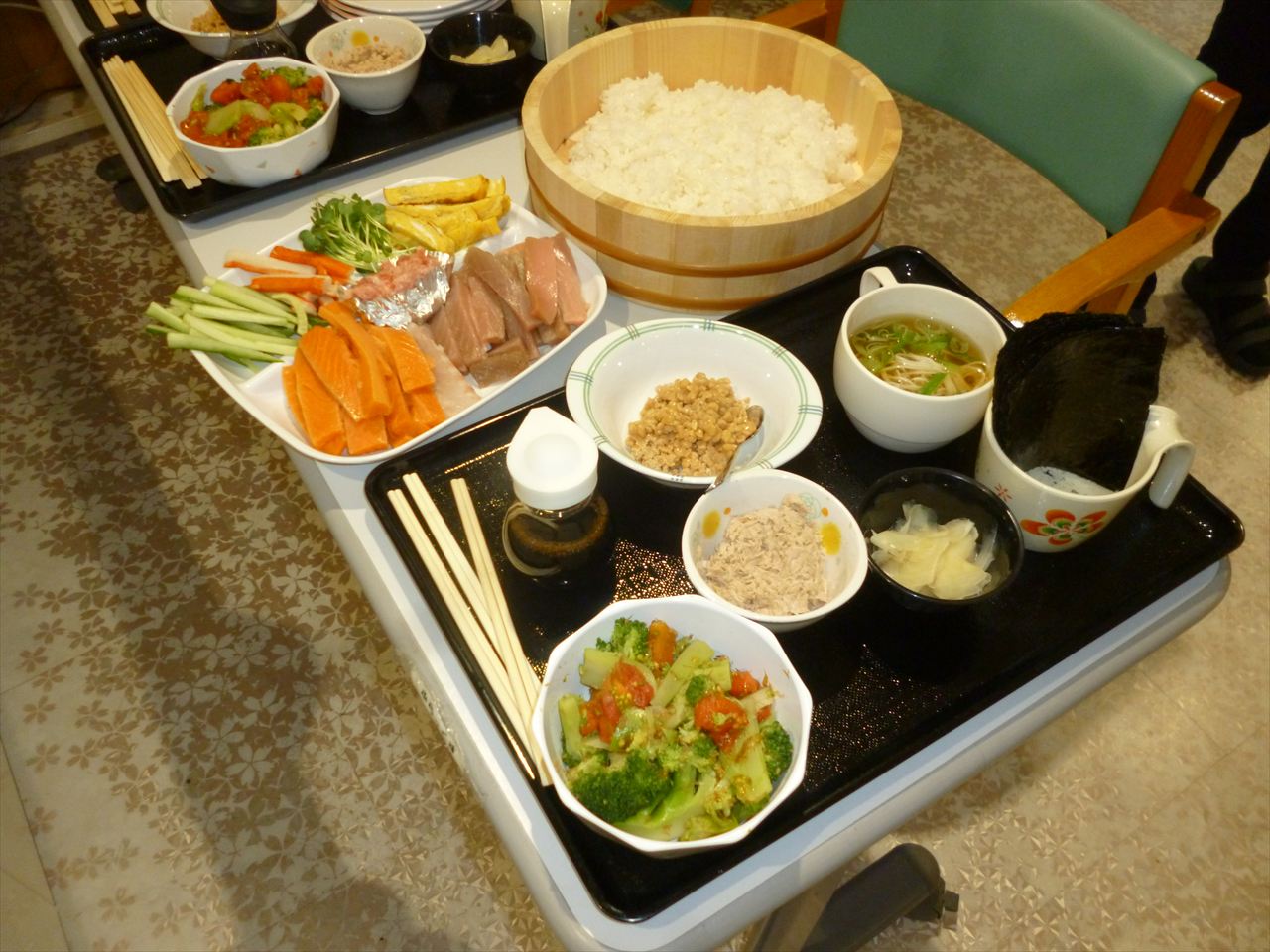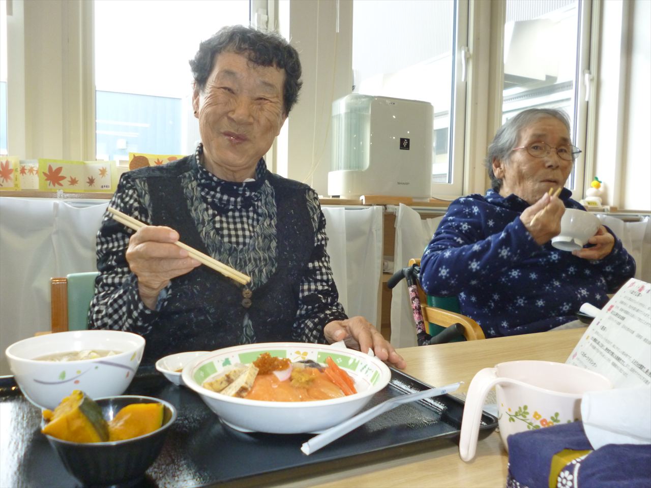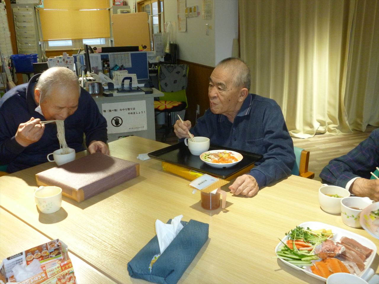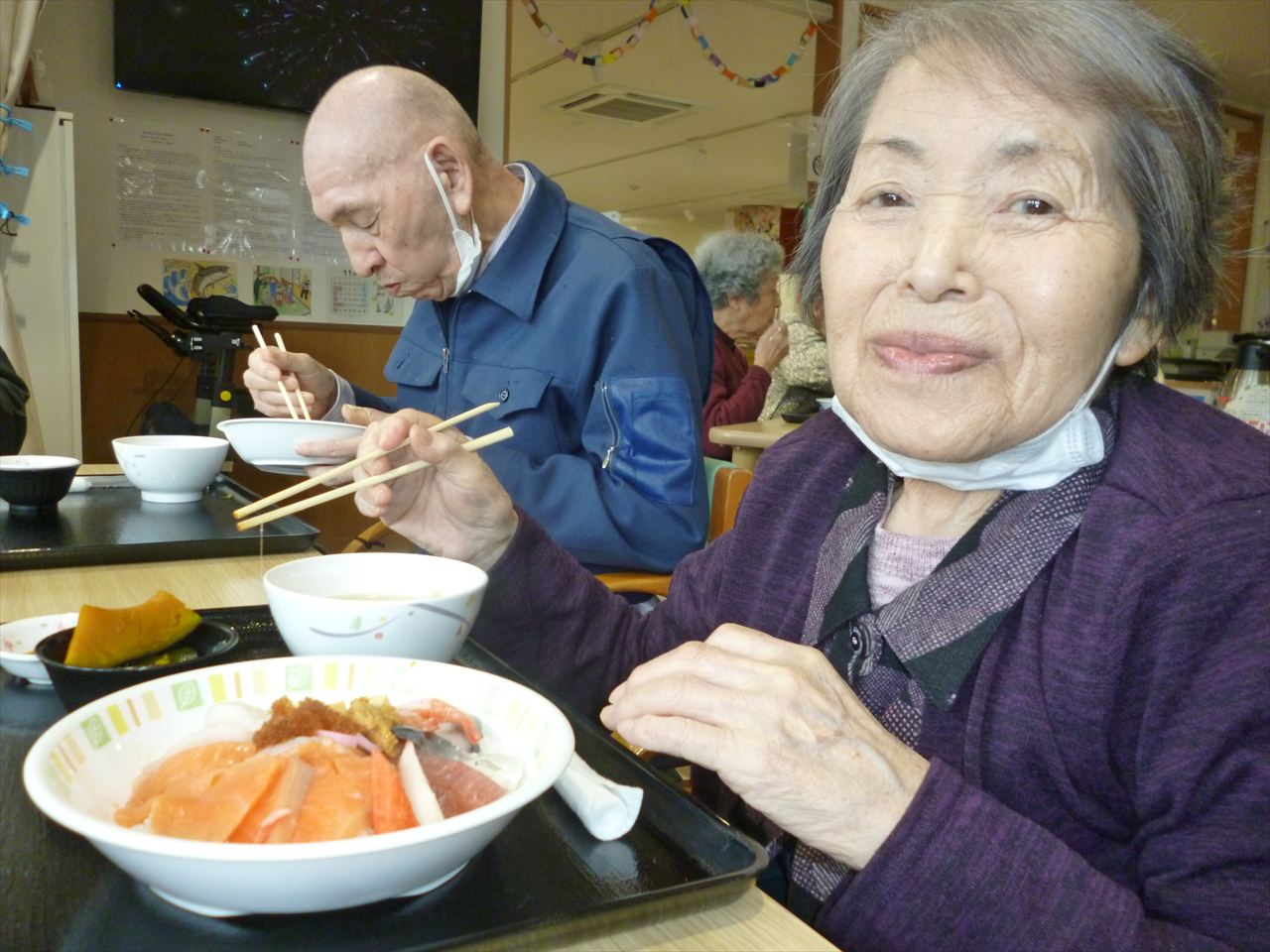お寿司行事でお腹いっぱいに! 投稿日: 2025年12月25日2025年12月25日 投稿者: dsca_master 😁ちらし寿司・ばら寿司・手巻き寿司とお腹一杯食べる事が出来ました。 ノンアルコールも飲みながら「美味しいね」と笑顔も沢山見る事が出来ました。 次は何が食べられるのかと楽しみにされていました。 また皆様に楽しんでいただける行事を考えてまいります(^_-)-☆