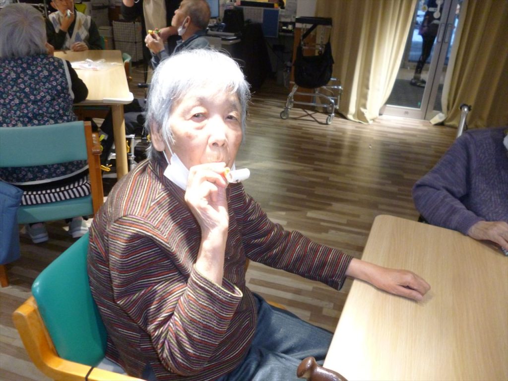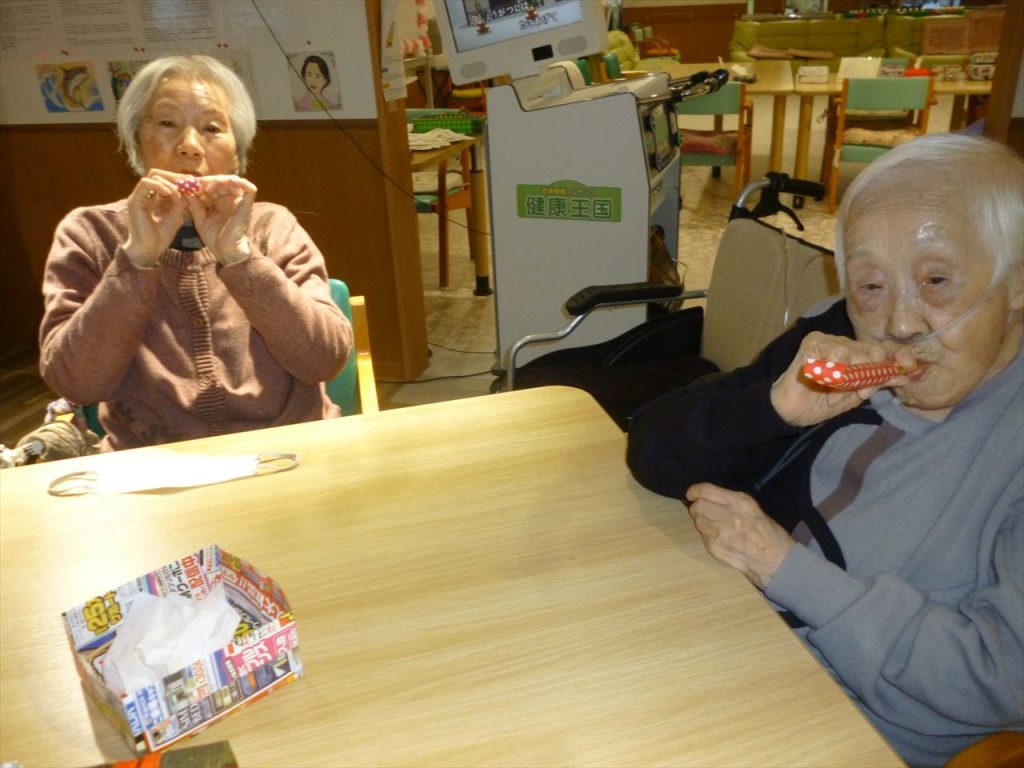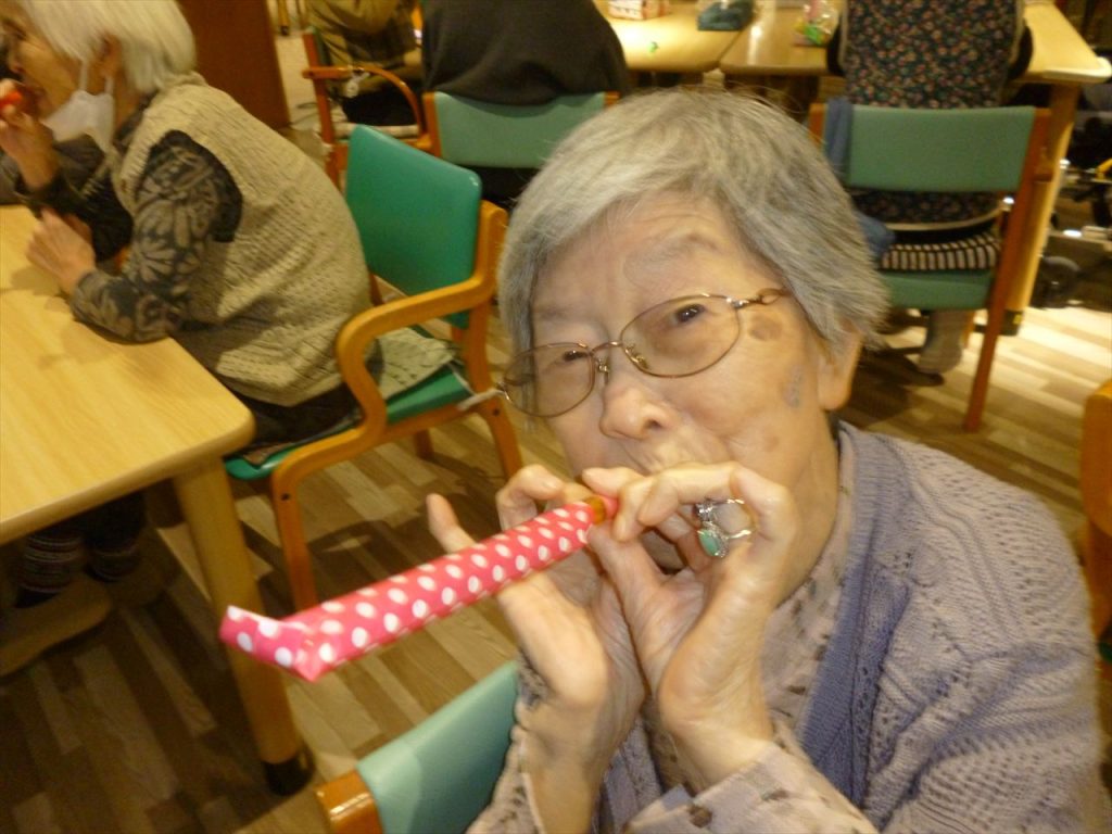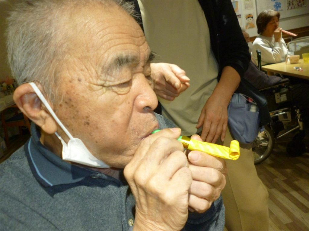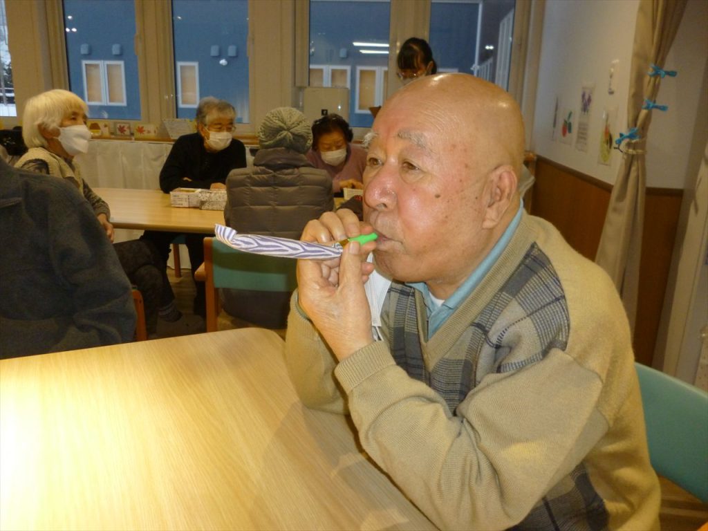 レクリエーションや嚥下の訓練も行っています 投稿日: 2025年12月25日2025年12月25日 投稿者: dsca_master レクリエーションでは沢山の応援もあり楽しむ事が出来ています。 これからも色々な事を皆さんで出来たら嬉しいです。 嚥下訓練では懐かしい巻き笛で息を吹きながらどこまで伸びるのか行っています。息を長く吹く事で心肺機能の向上を目指しています。