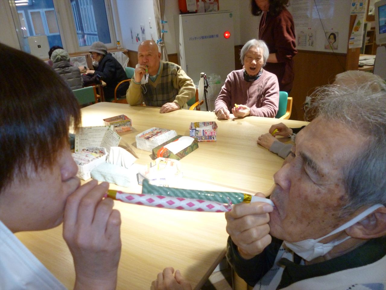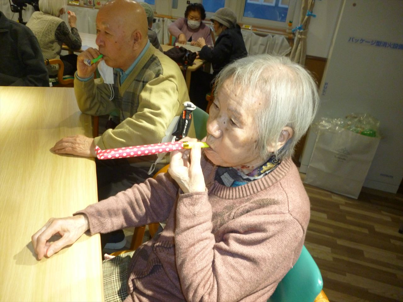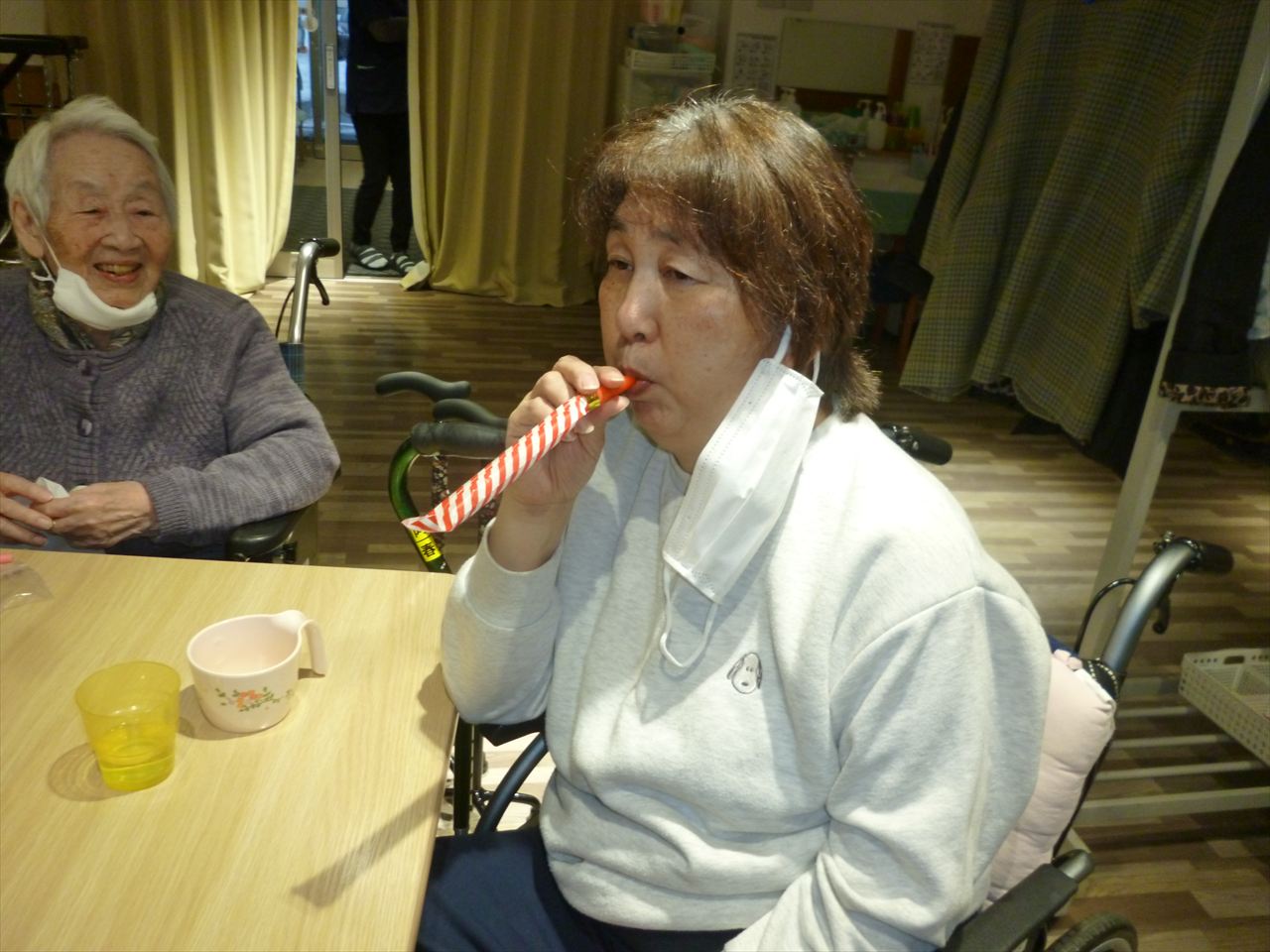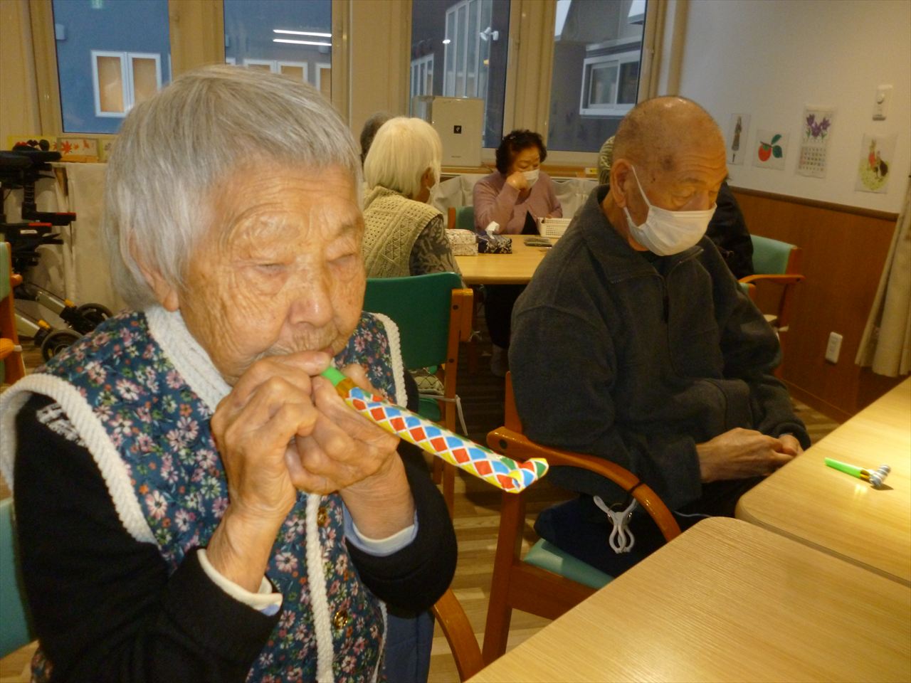 レクリエーションや嚥下の訓練も行っています 投稿日: 2025年12月25日2025年12月25日 投稿者: dsca_master レクリエーションでは沢山の応援もあり楽しむ事が出来ています。 これからも色々な事を皆さんで出来たら嬉しいです。 嚥下訓練では懐かしい巻き笛で息を吹きながらどこまで伸びるのか行っています。息を長く吹く事で心肺機能の向上を目指しています。