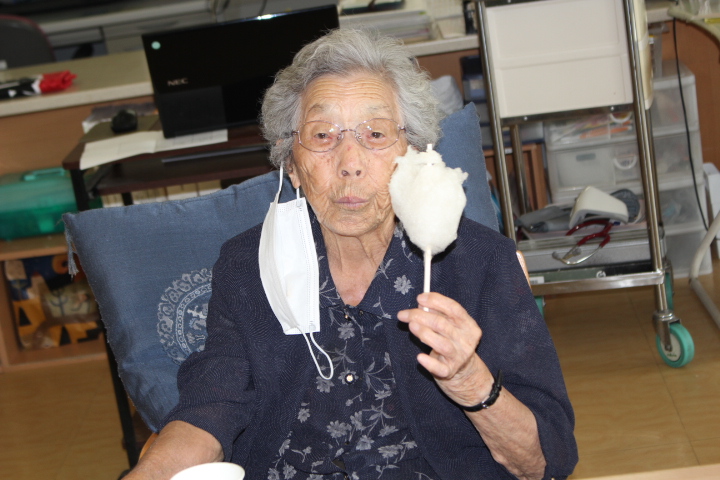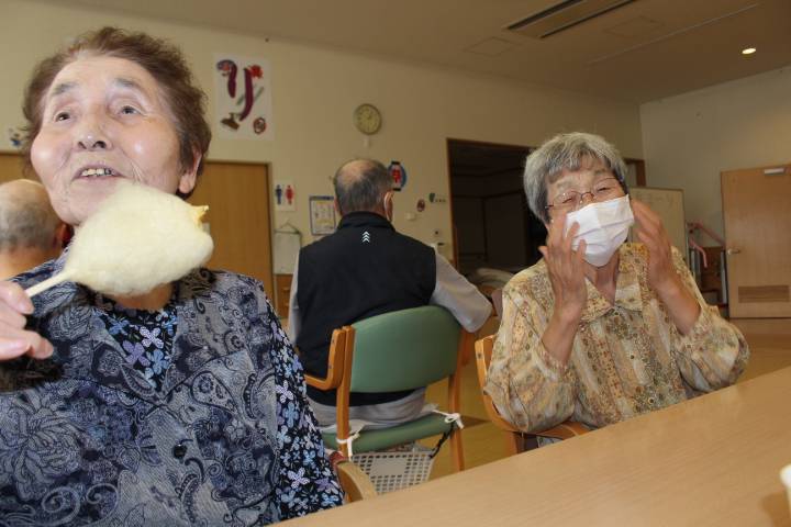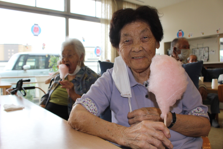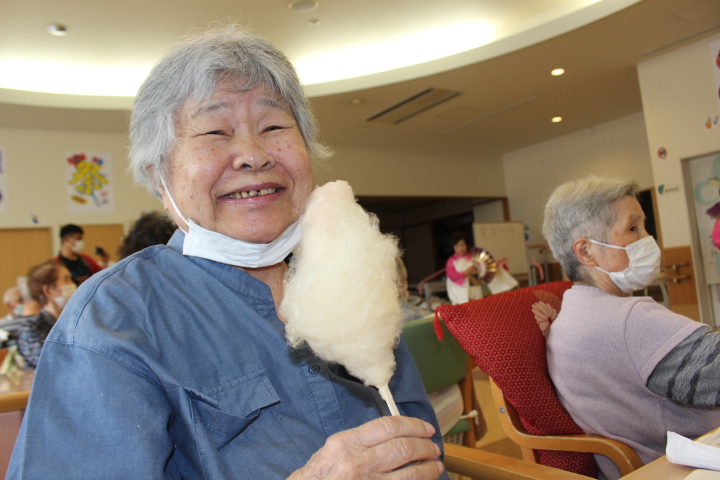 いつも送迎業務お疲れ様です(^o^)綿あめは菅原介助員、寺田介助員が作って頂きました。