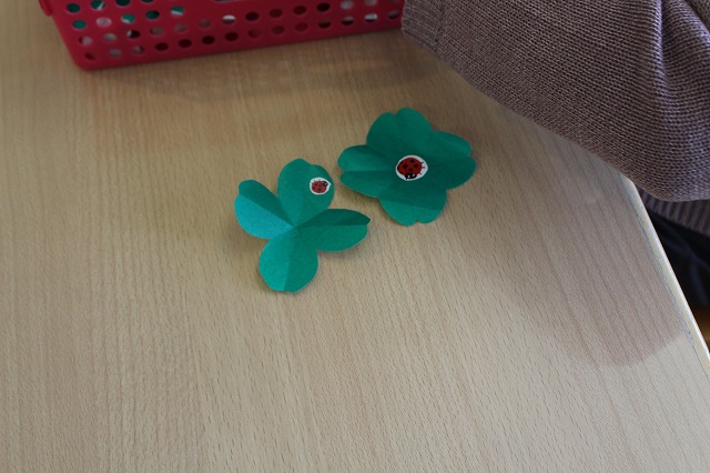 よつ葉摘みゲーム?沢山ある葉っぱの中からてんとう虫がついているのを早く見つけれるかなぁ?(^o^)/