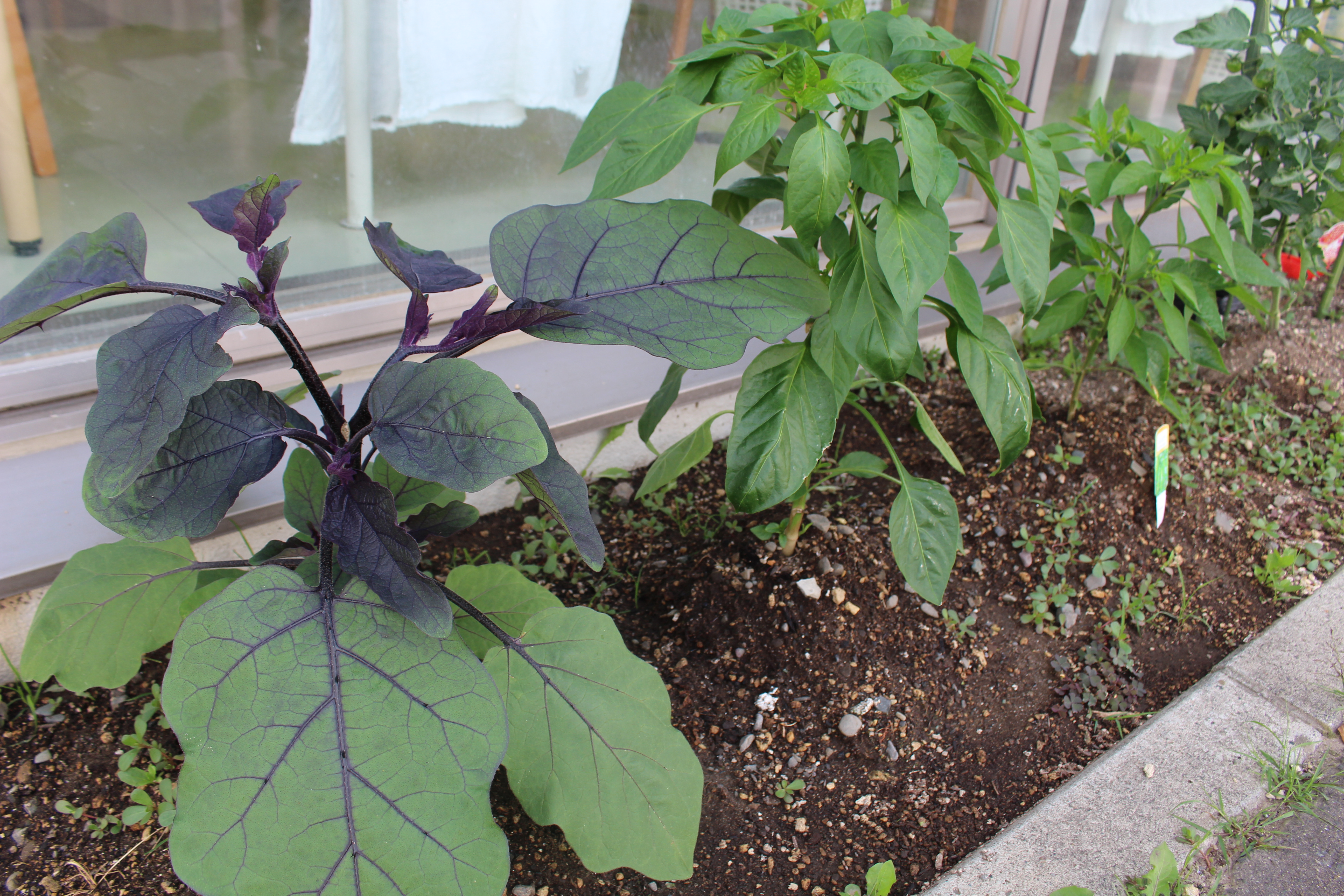 いつものメンバー、ナス・ピーマン・ししとうはもう少しで花が咲きそうflair.gif