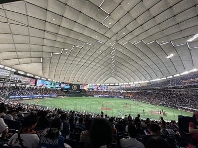 3日目の夕方には、東京ドームでの野球観戦(ディズニーとは別行動)もありました![]()