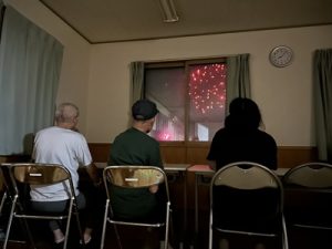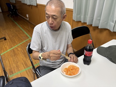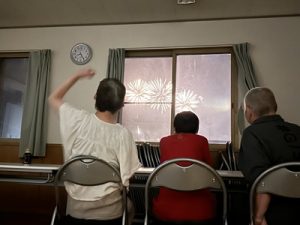 中庭で炭を起こし、利用者さんとBBQをしました![]()