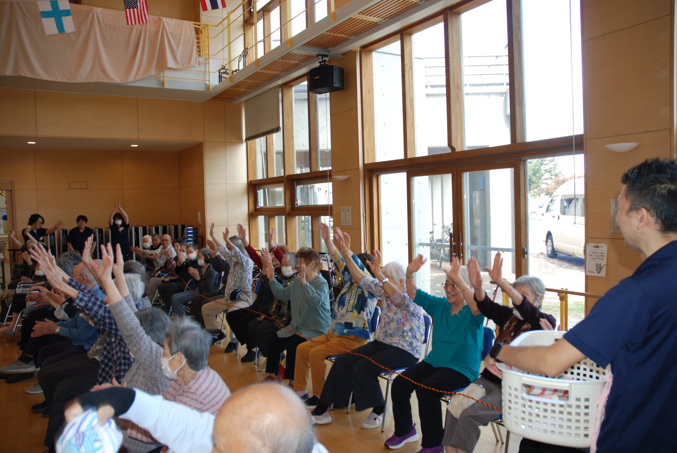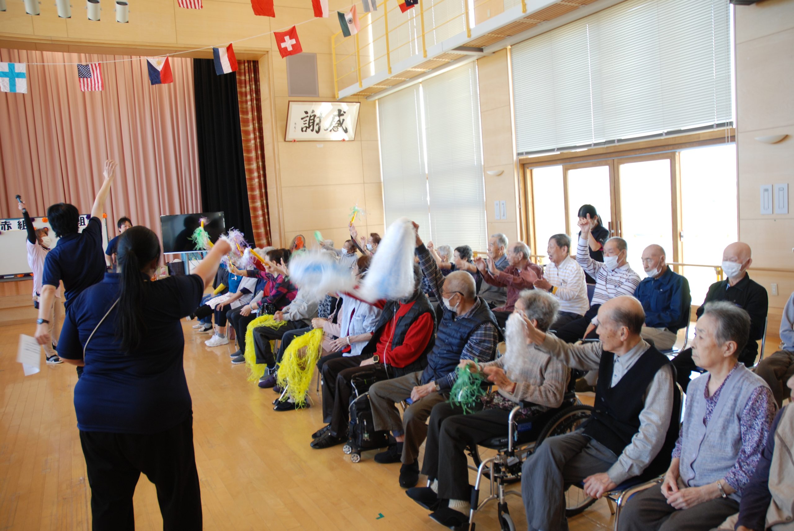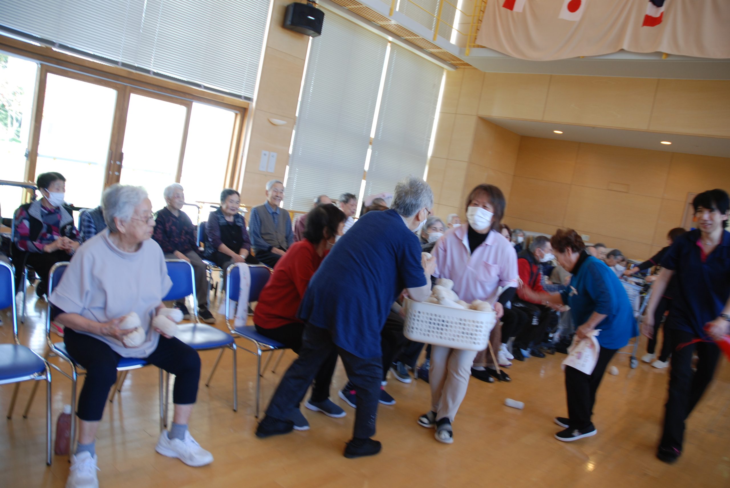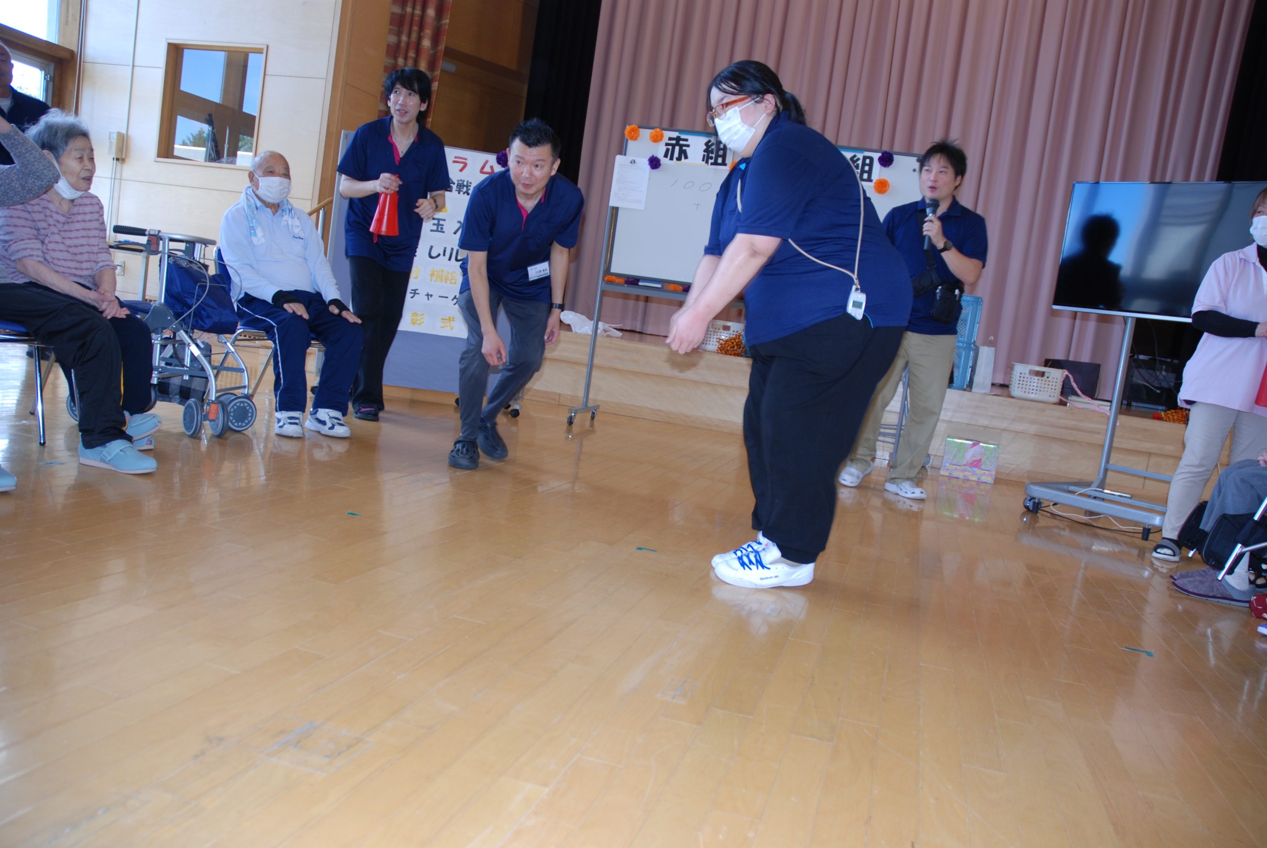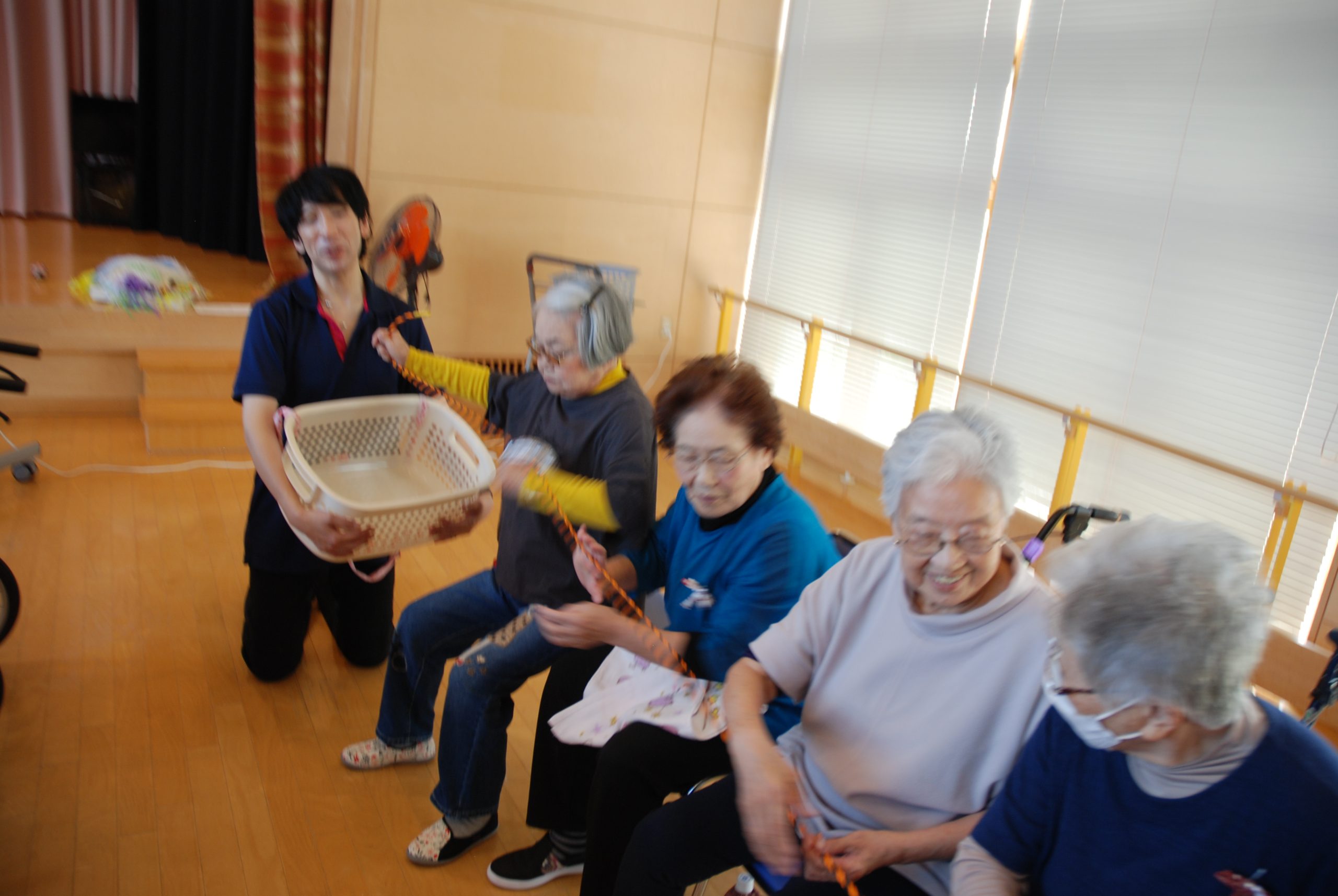 カゴが移動するので皆さんは座ったままでの玉入れです・・が、思わず立ってしまう方もいらっしゃいました(^^)