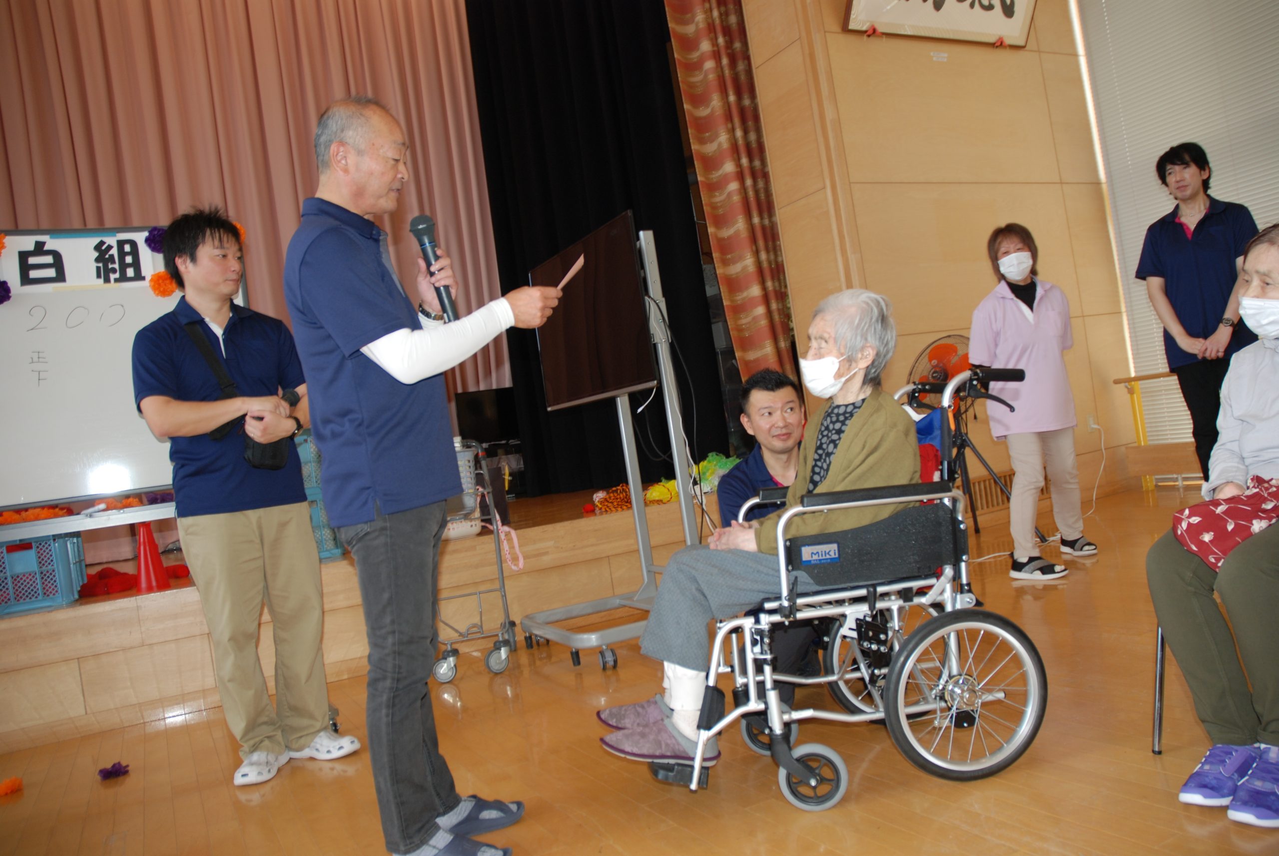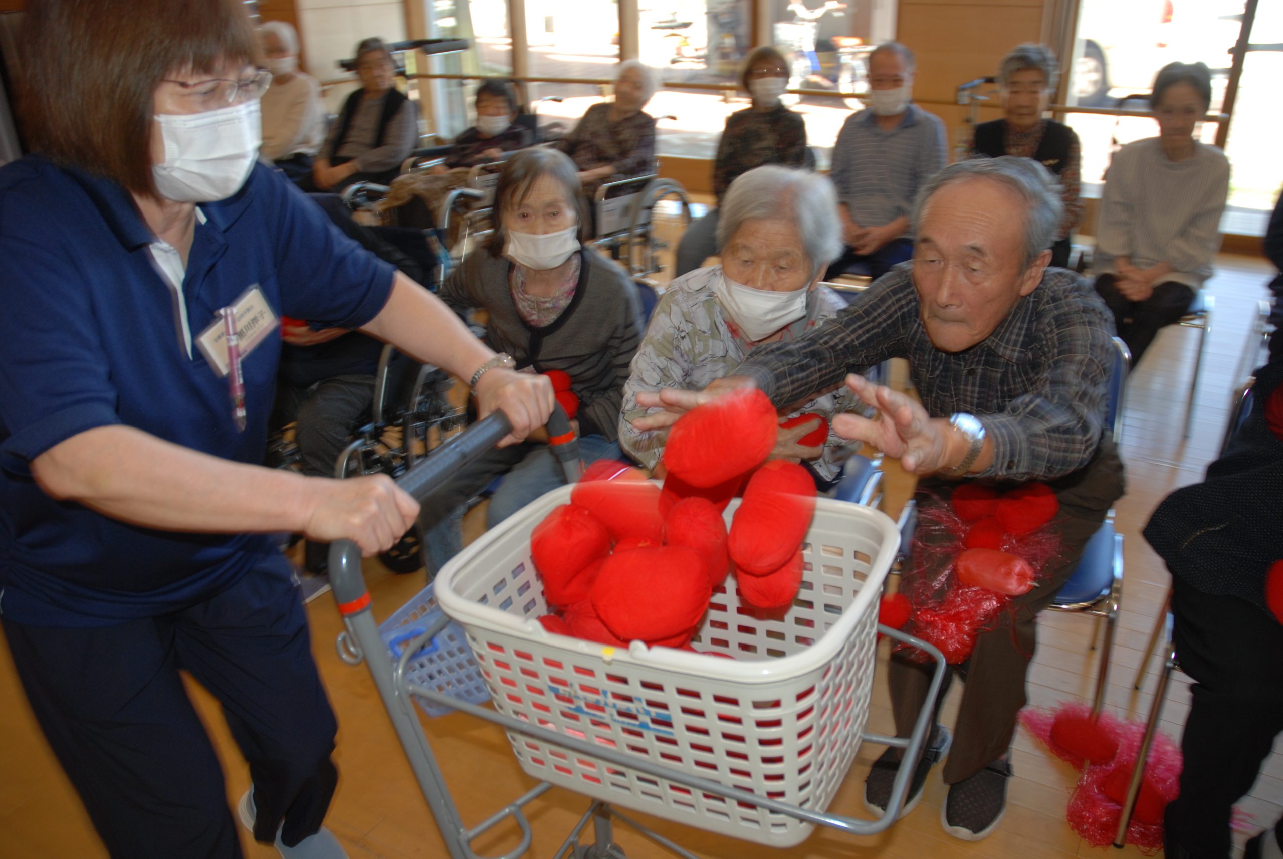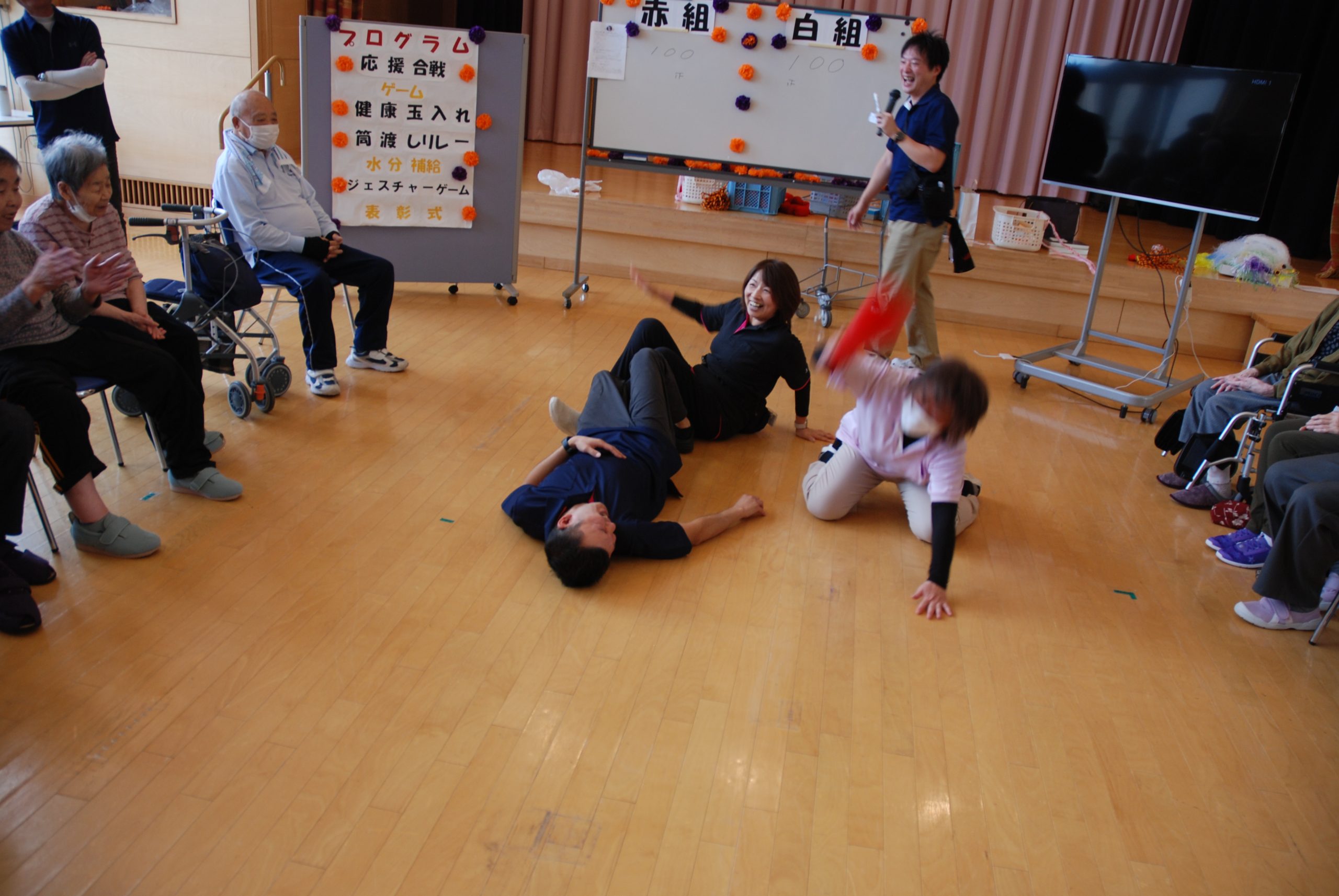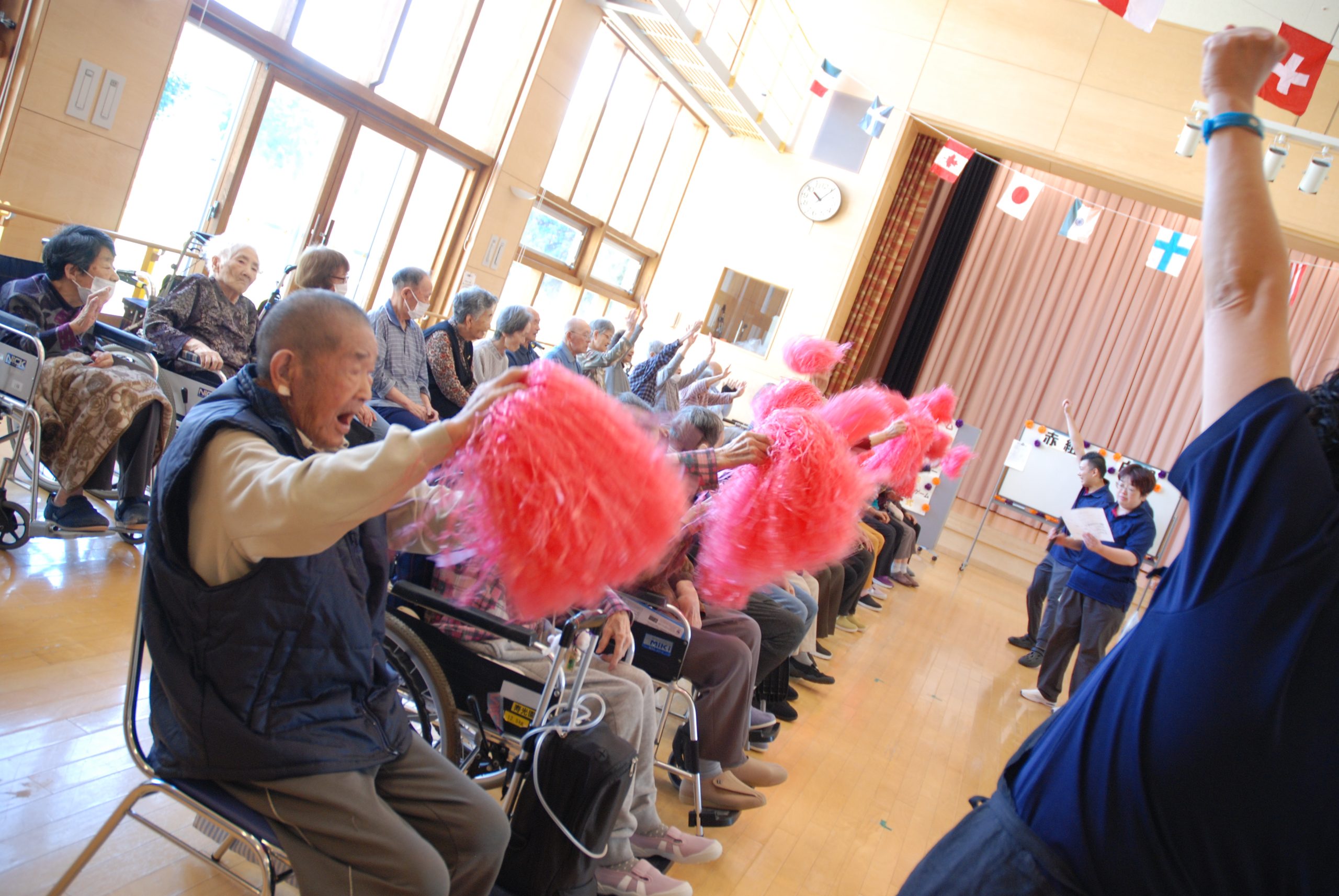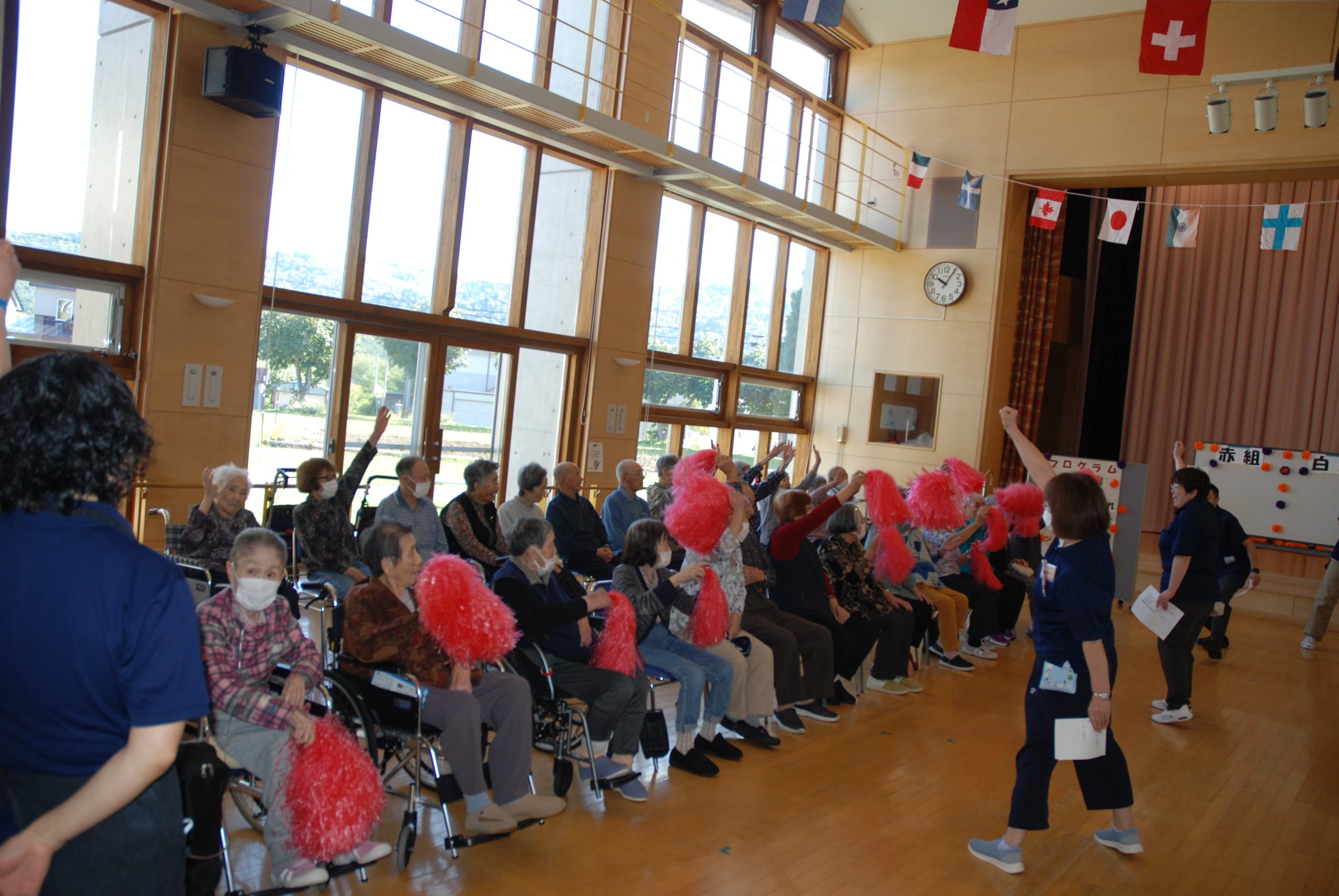 カゴが移動するので皆さんは座ったままでの玉入れです・・が、思わず立ってしまう方もいらっしゃいました(^^)