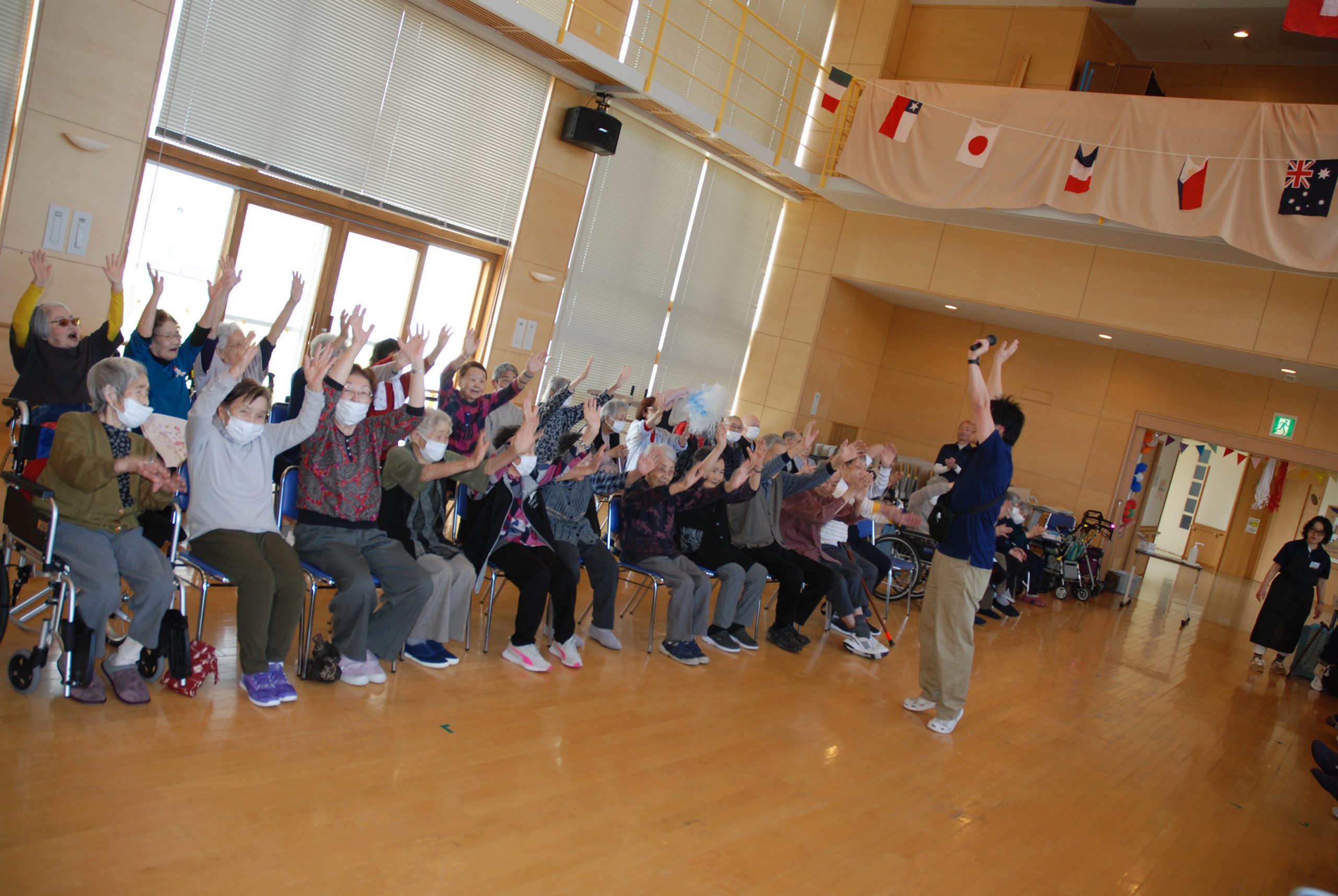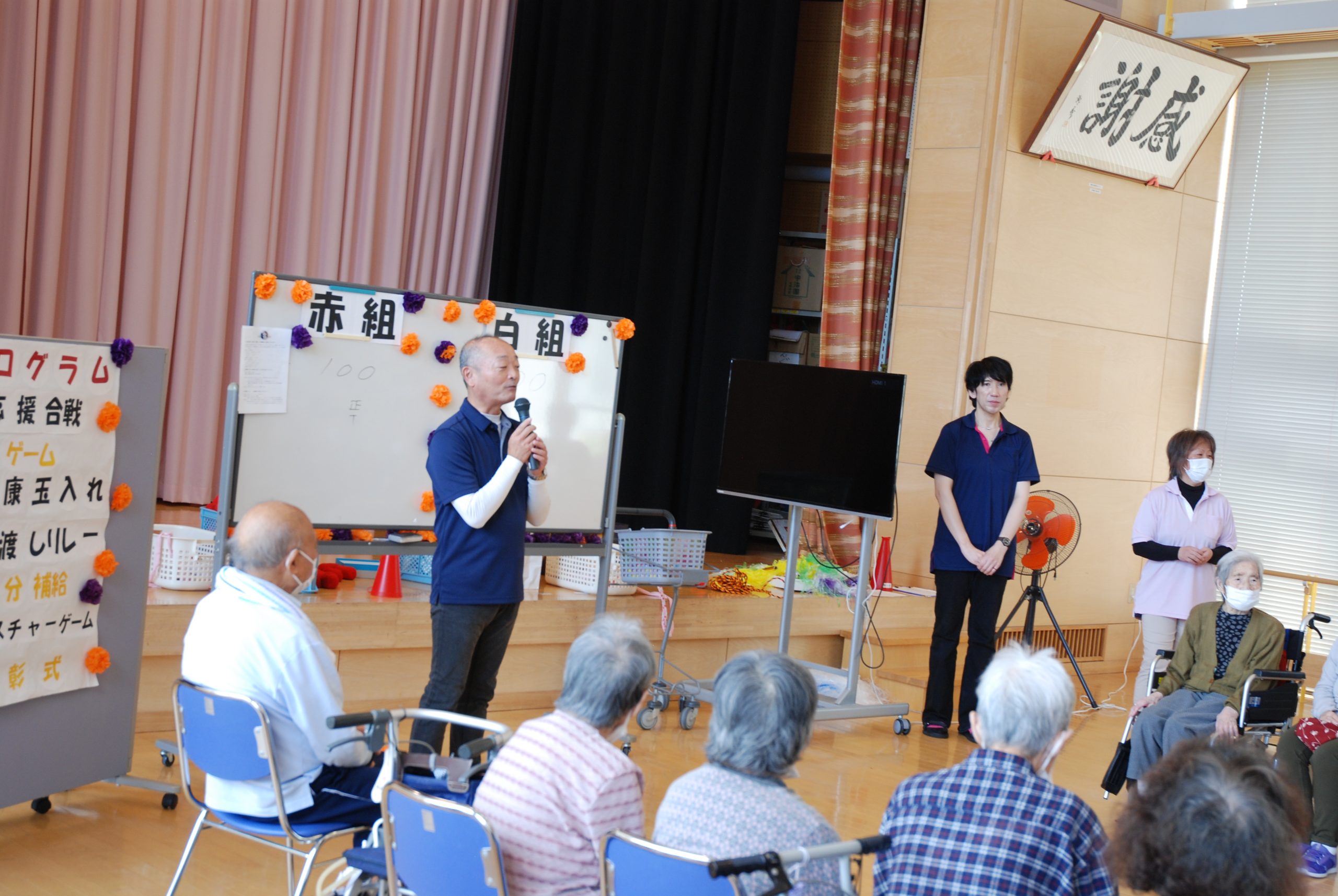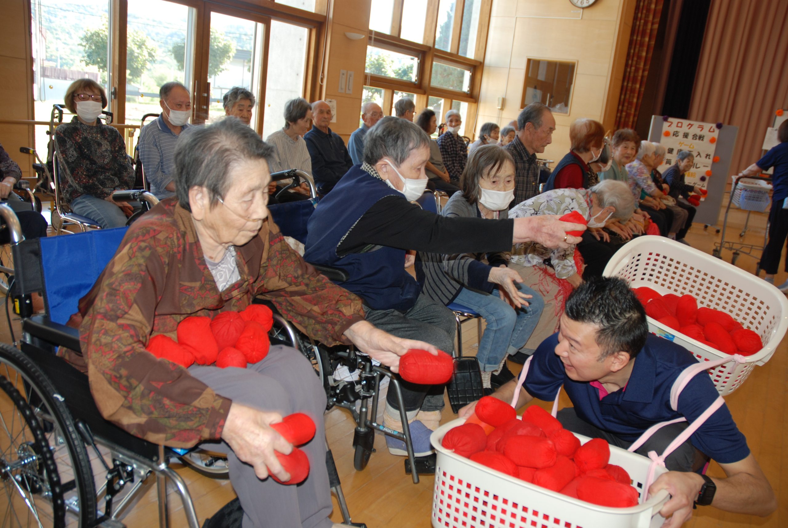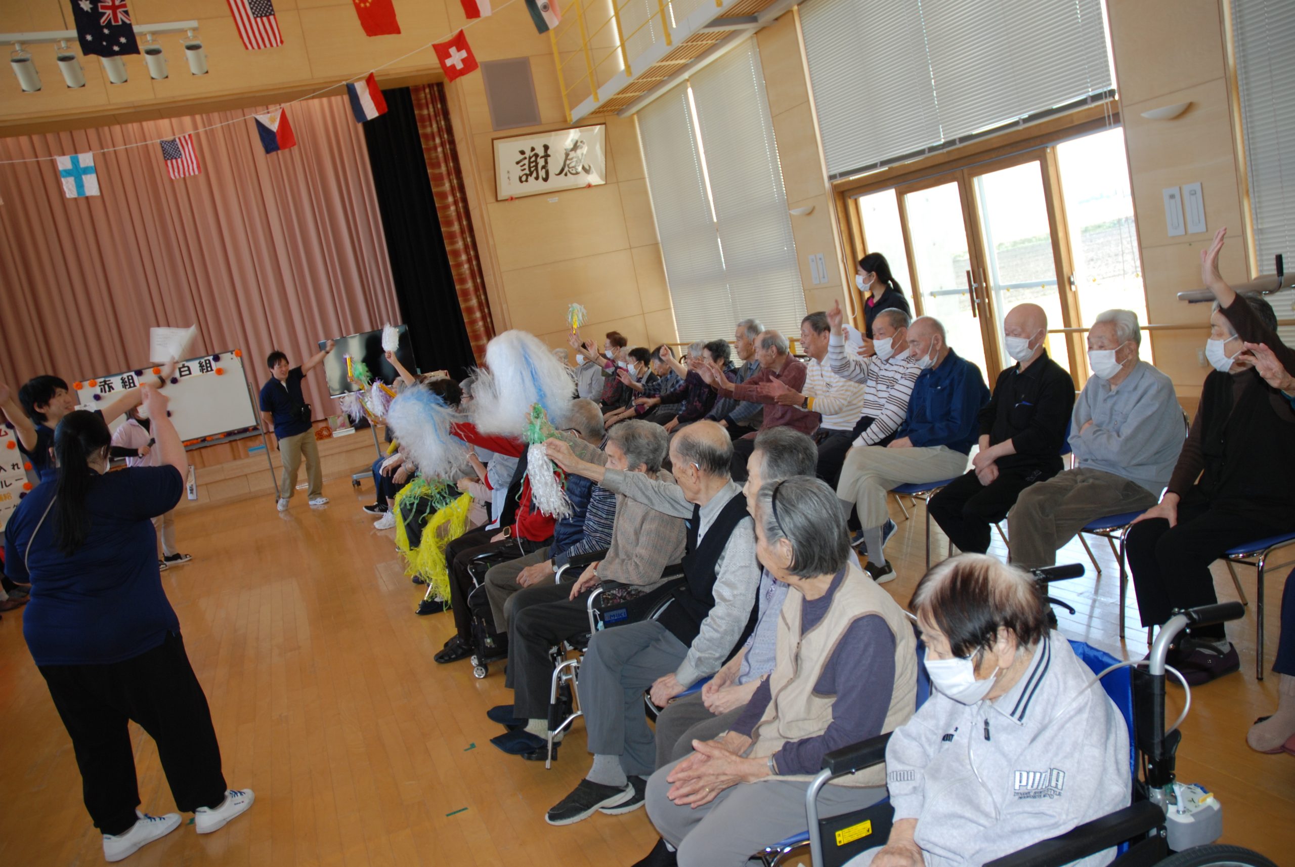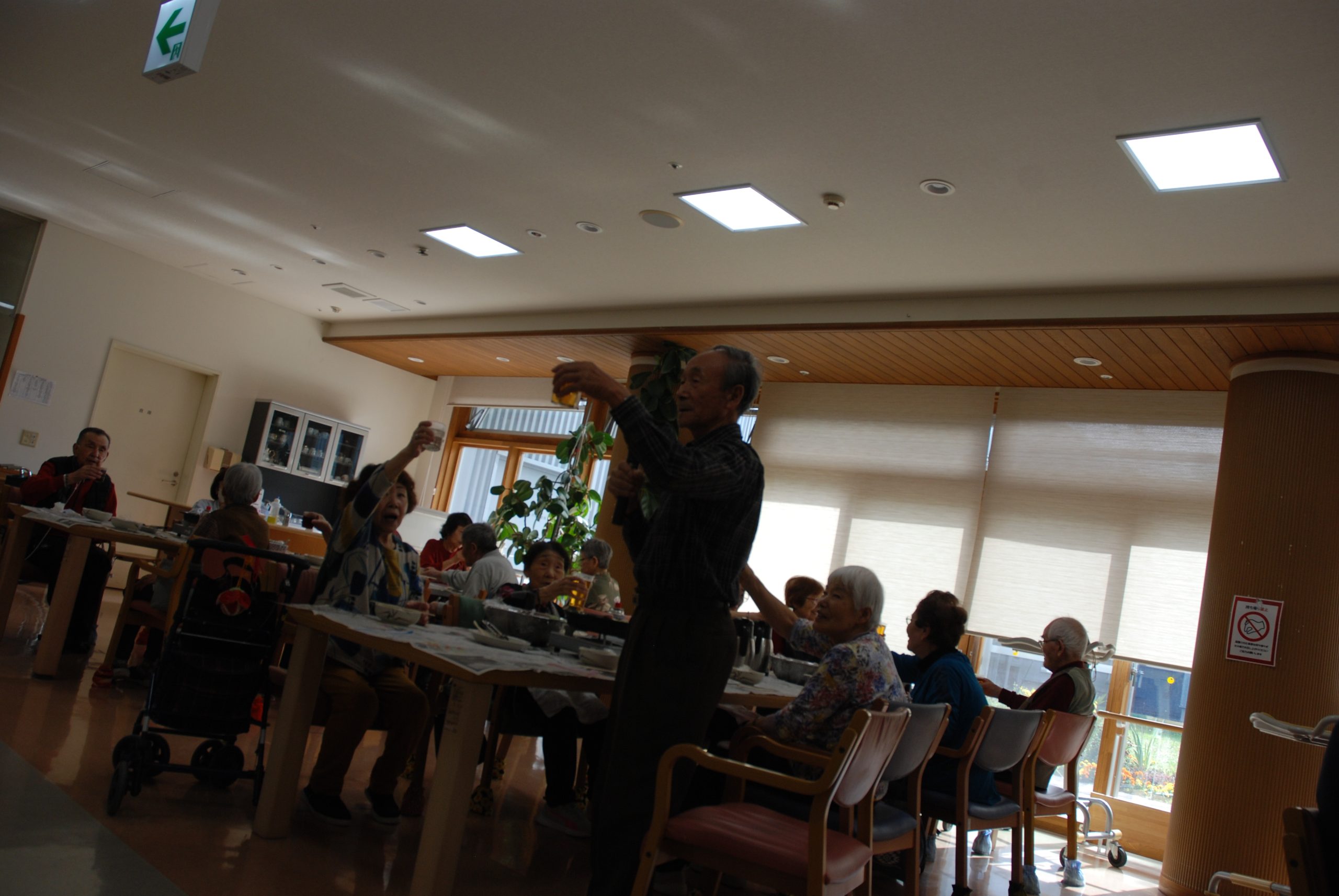 カゴが移動するので皆さんは座ったままでの玉入れです・・が、思わず立ってしまう方もいらっしゃいました(^^)