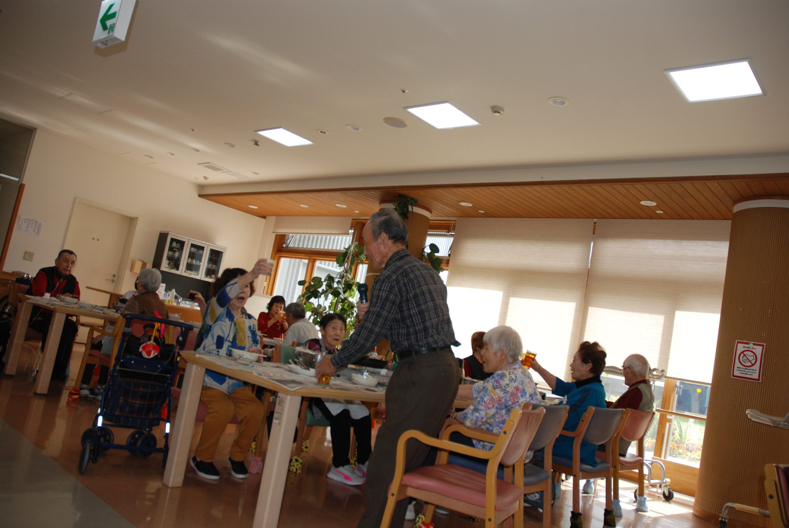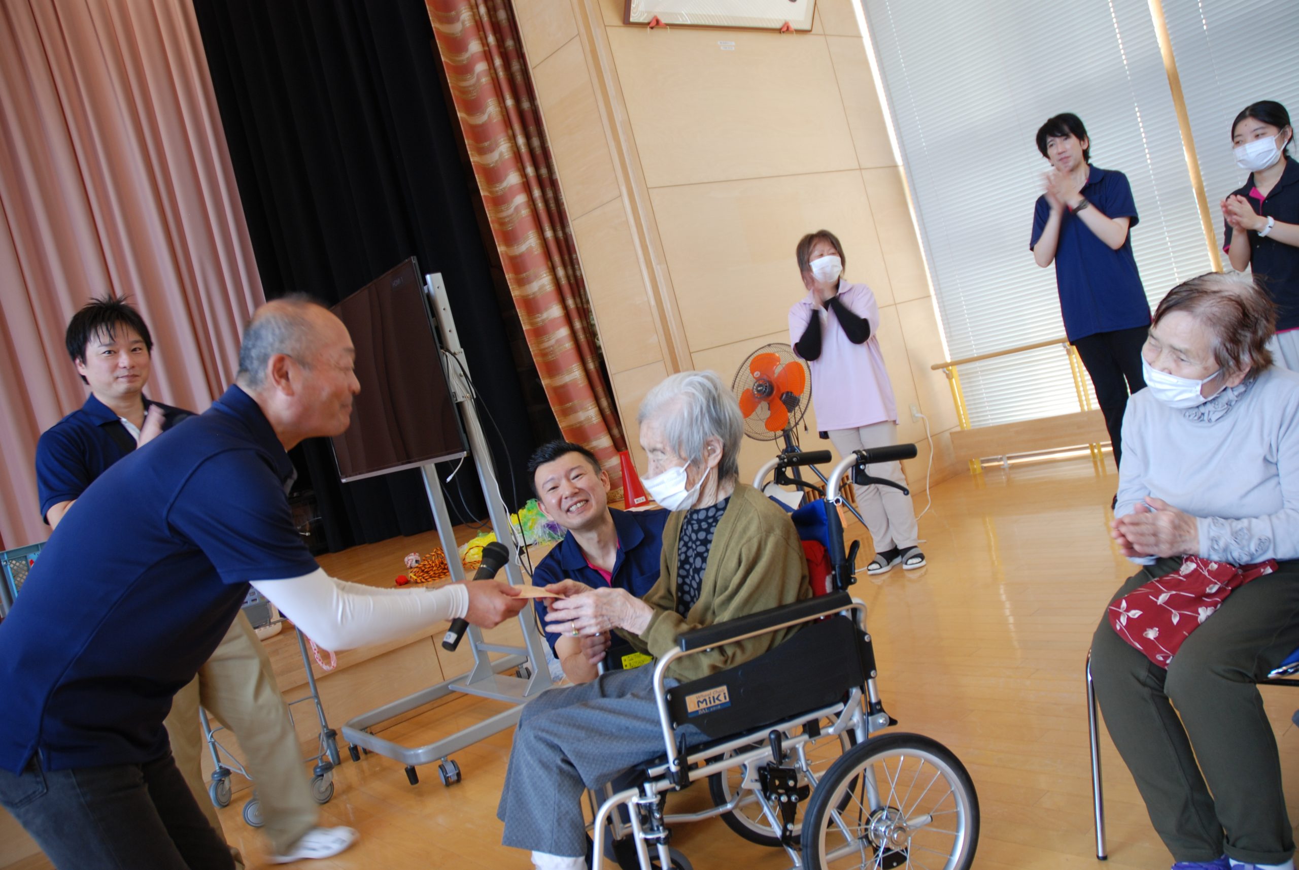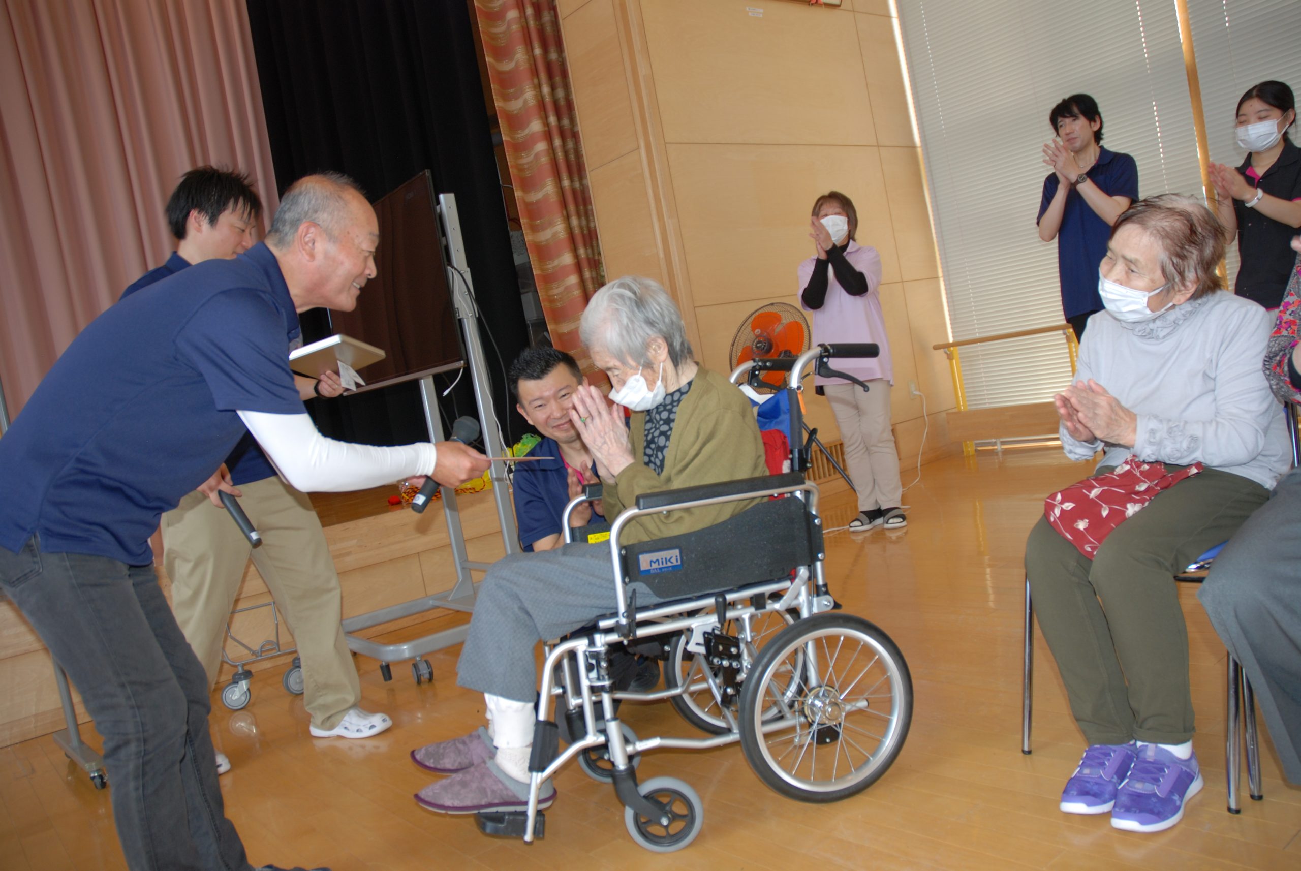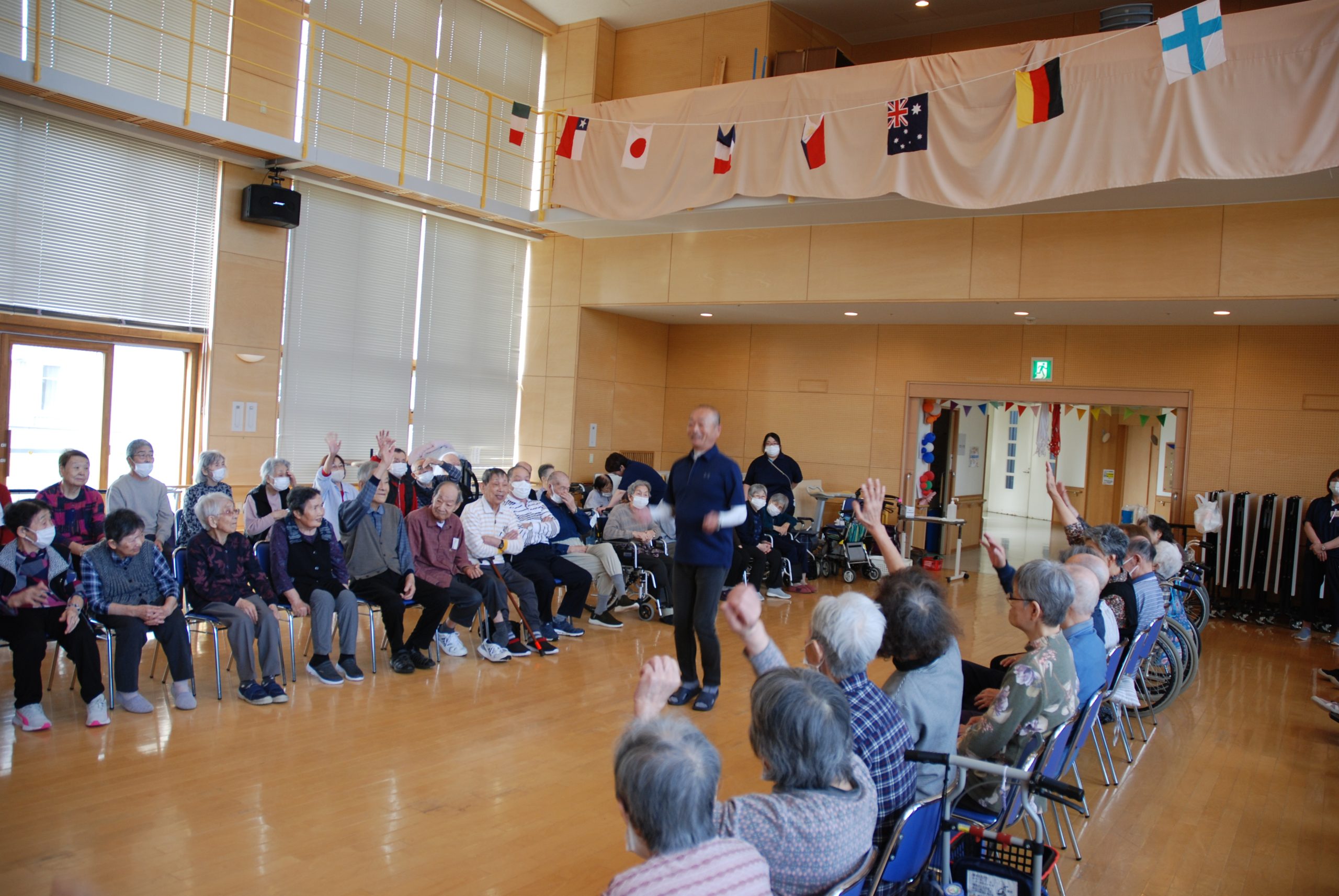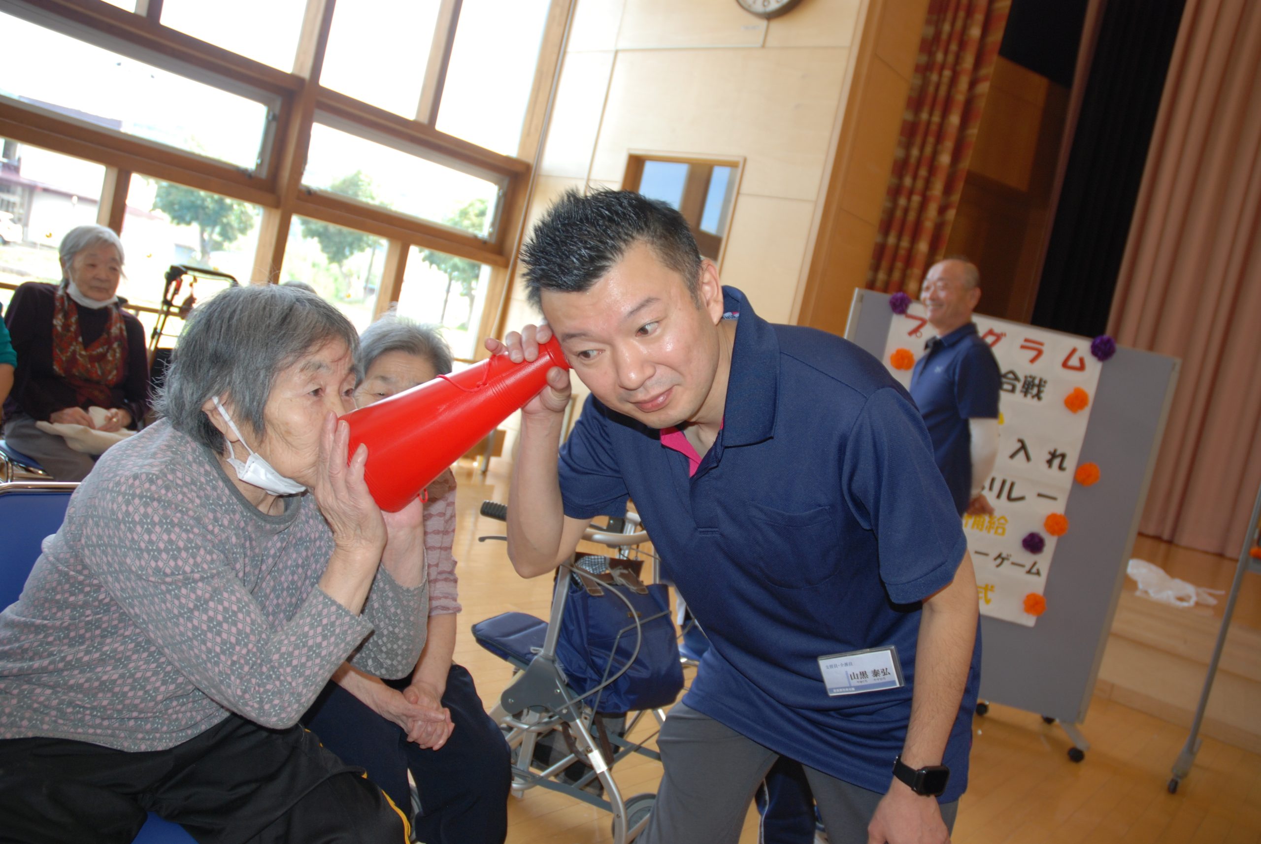 カゴが移動するので皆さんは座ったままでの玉入れです・・が、思わず立ってしまう方もいらっしゃいました(^^)