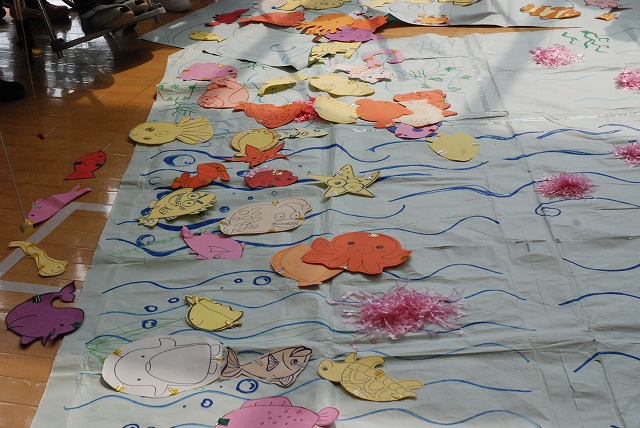 たくさんの魚に紛れてカバ・かっぱ等もいました(笑)もちろん利用者さんに釣られておりました。
